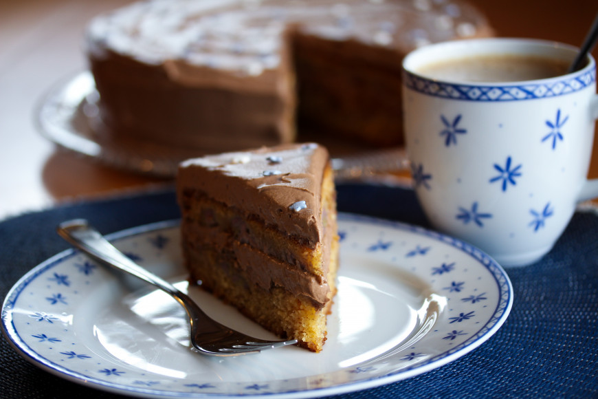 ♥ Kaken oppbevares i kjøleskapet, men smaker aller best romtemperert, så sjokoladekremen er helt myk. Kaken er fin å fryse både med og uten sjokoladekrem.