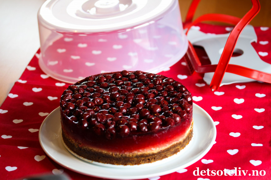 ♥ Legg merke til at ostekaken bør stå i kjøleskapet over natten før den dekkes med kirsebær. Etter en natt i kjøleskapet vil ostekaken stivne i konsistensen og dermed tåle å bli dekket med kirsebærlokket.