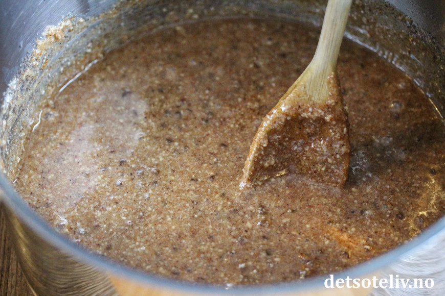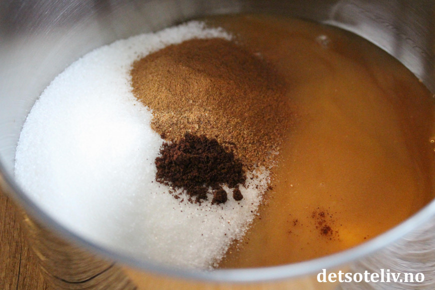 Ha honning, sukker, kanel, nellik og muskat i en nokså stor, tykkbunnet kjele.