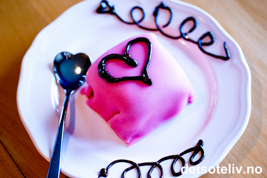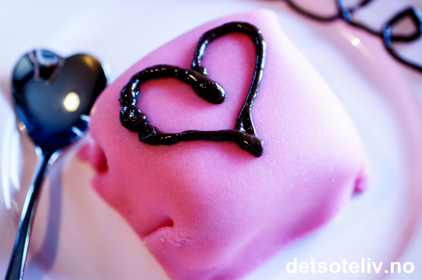♥ Jeg har her brukt rosa jordbærmarsipan fra Odense.