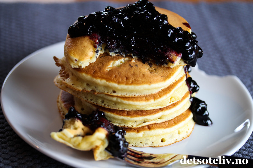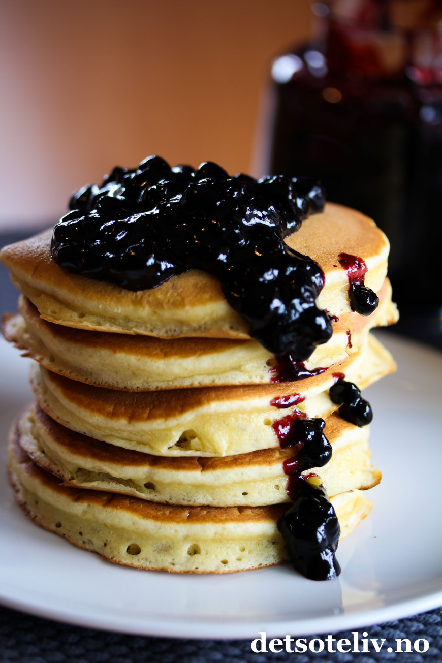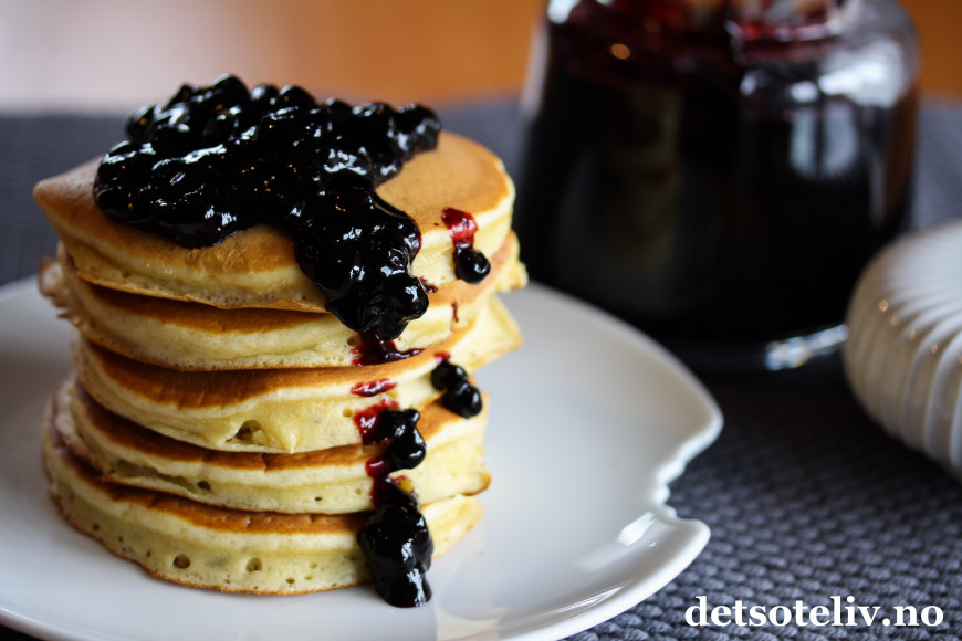 Serveres gjerne med hjemmelaget blåbærsyltetøy. Du finner oppskriften HER på Det søte liv.