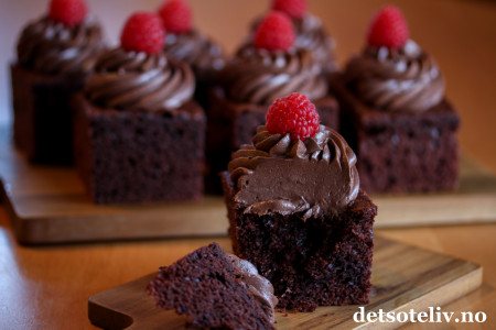 Kjempegod kake! For friskere smak på glasuren, så tilsett en klunk med bringebærbiola. Da får den et hint av bringebærsmak
