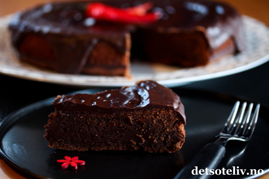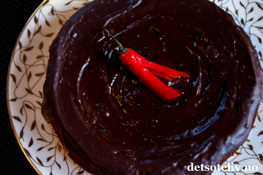 ♥ Freia Premium 70% kakao og chili har veldig mild chilismak, så du trenger ikke å være redd for at kaken blir for sterk. Kaken får kun en liten, spennende bismak av chili. 200 g Freia Premium 70% kakao og chili tilsvarer 2 plater. Jeg har brukt vanlig kokesjokolade i glasuren, men bruk gjerne Freia Premium 70% kakao og chili i den også.