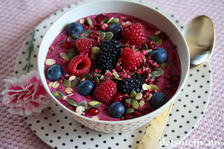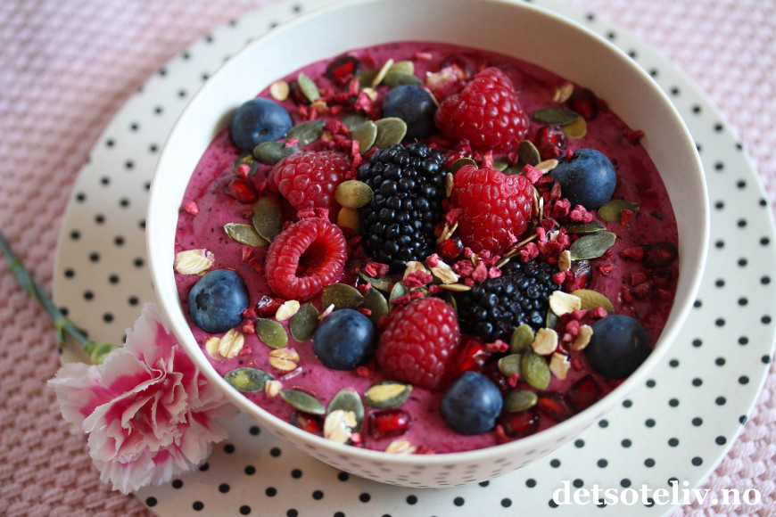 Den tykke konsistensen får man for eksempel ved å bruke mye frosne bær/fruktbiter og tykk yoghurt. Dette gir også en kjølende og forfriskende effekt!