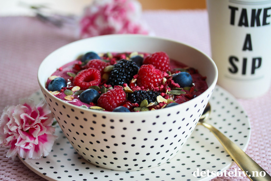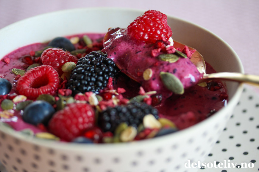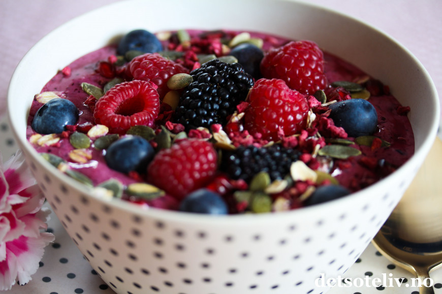 ♥ Smoothie Bowls smaker best helt ferske, mens de frosne bærene gjør konsistensen tykk og deilig.