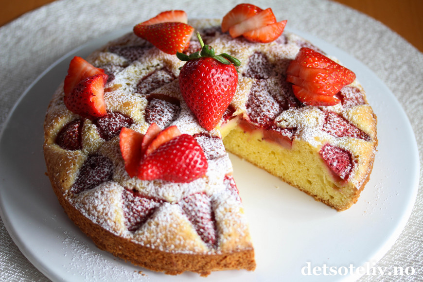 Jeg synes denne jordbærvarianten av vaniljekaken ble utrolig vellykket!