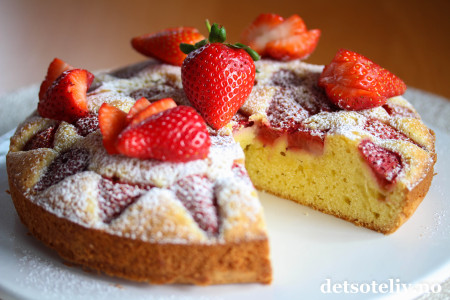 Jordbær og vaniljekake er jo bare så utrolig godt sammen!