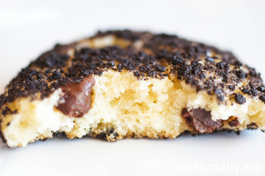 ♥ I stedet for chocolate chips kan du bruke grovt hakket kokesjokolade.