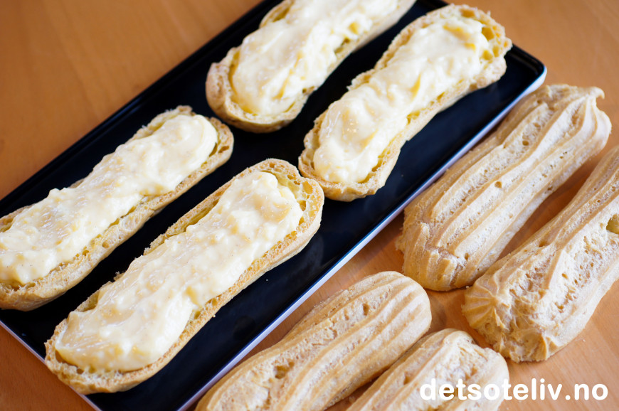 ♥ Éclairs smaker aller best ferske, men kan også lages dagen før servering. Husk å oppbevare kakene kjølig frem til servering.