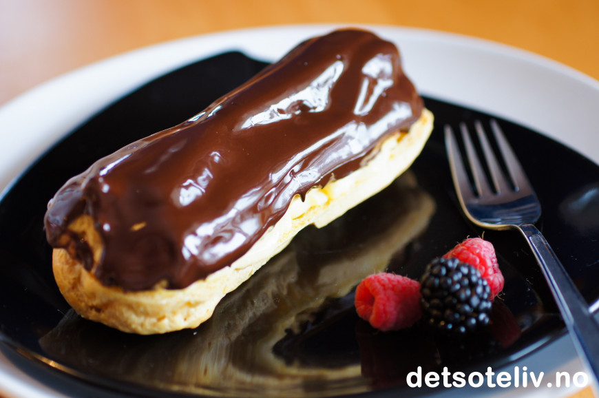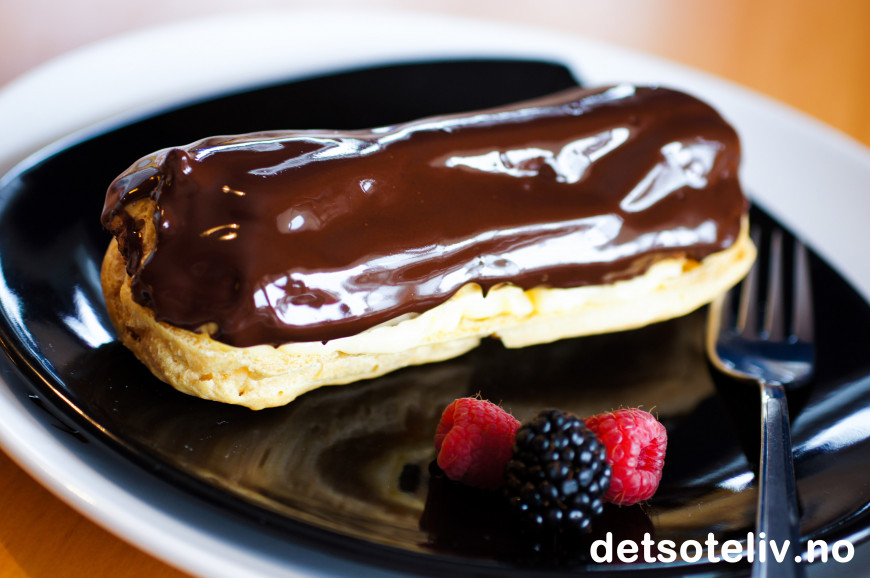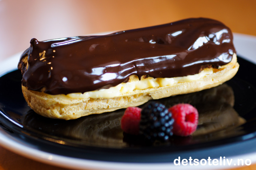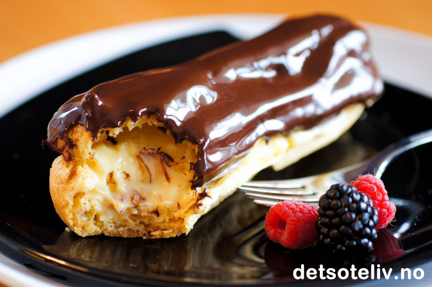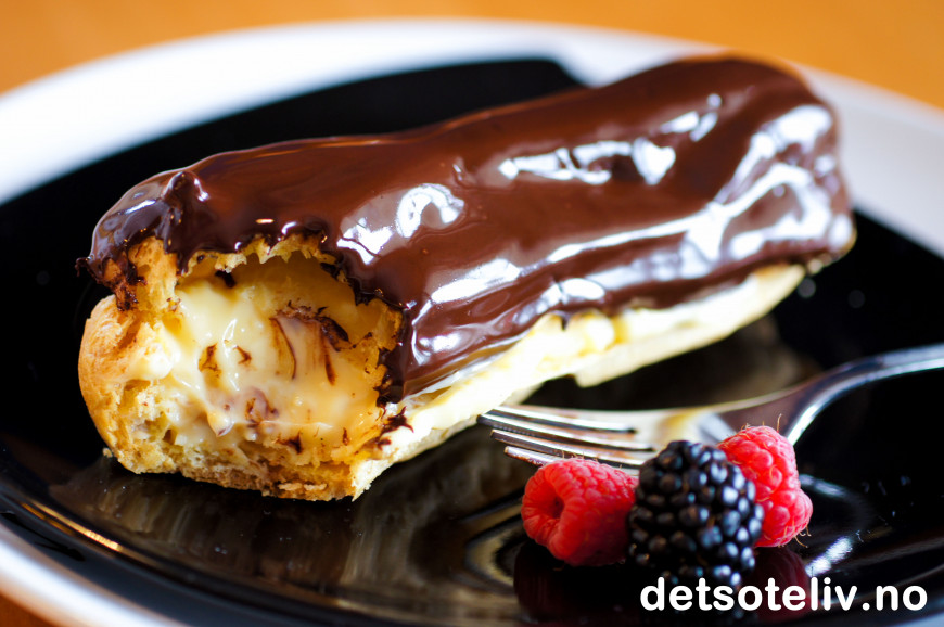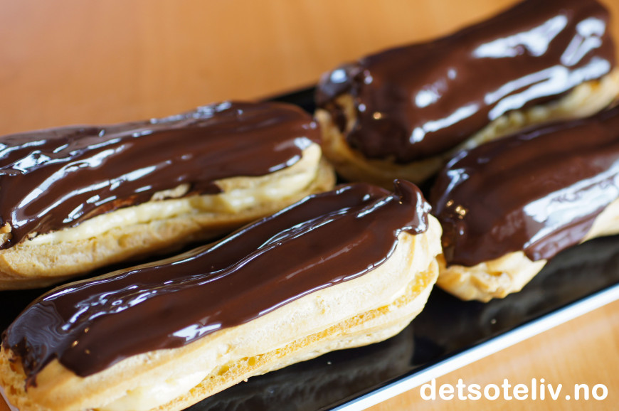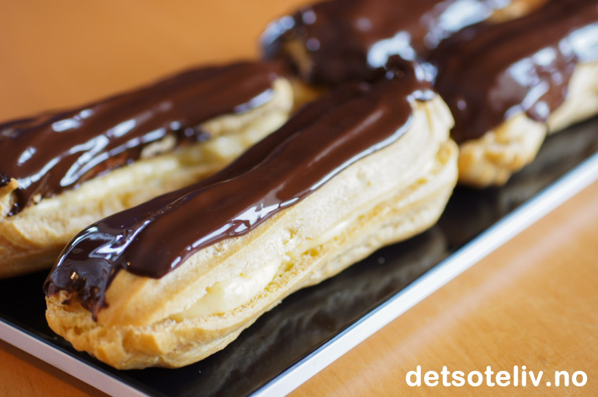 Mitt kjærlighetsforhold til "Éclairs" startet mens jeg gikk på jusstudiet i Oslo og jobbet på Møllhausen konditori i helgene. Hos Møllhausen solgte vi nettopp slike store, kremfylte Éclairs dekket med sjokoladeglasur, og disse fantastiske konditorkakene var noe av det første som forsvant fra kakedisken.