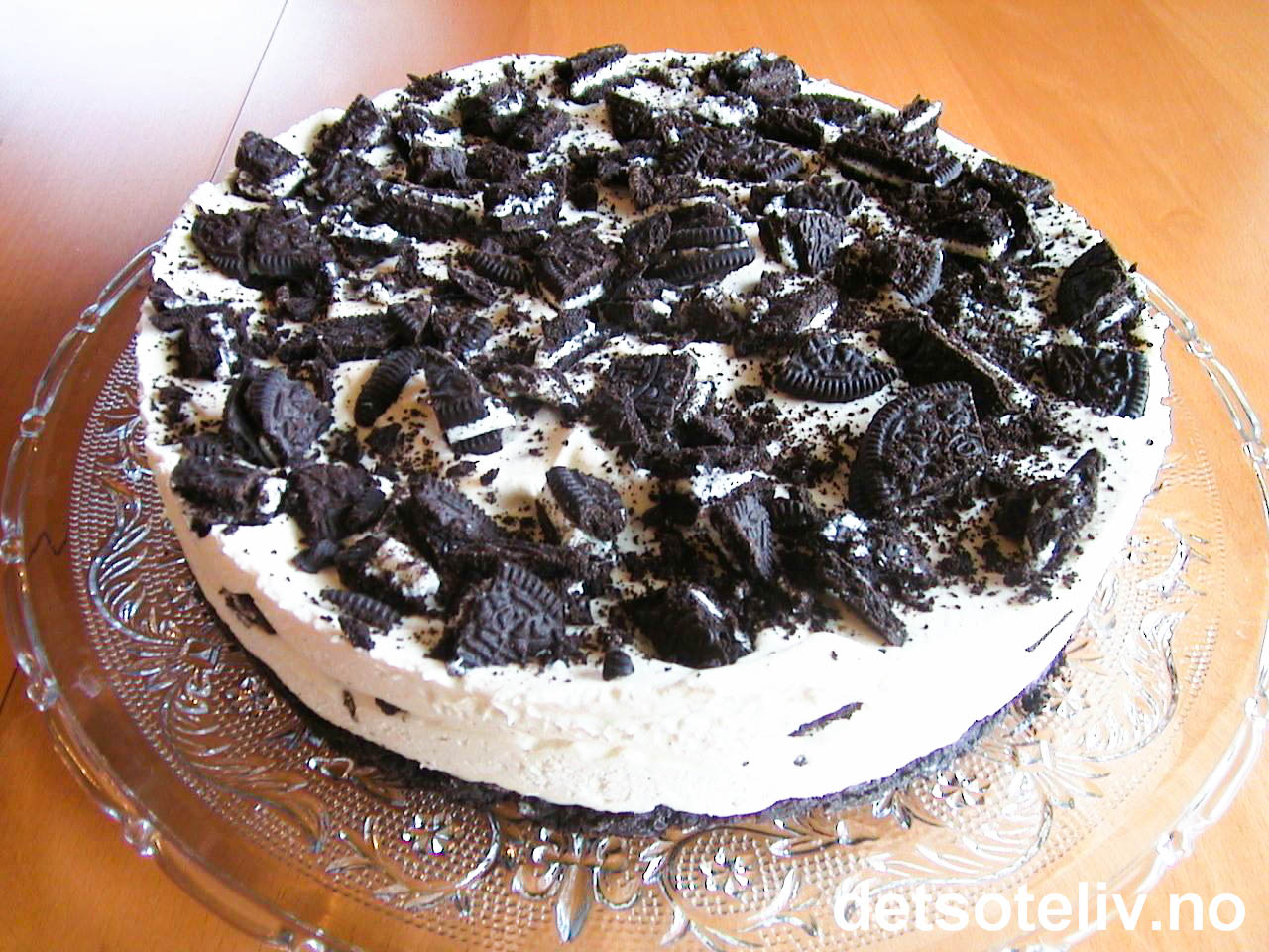 Oreokjeks fås kjøpt i pakninger på flere størrelser, men den vanligste størrelsen er en pakke på 176 g som inneholder 4 små poser à 4 stk (16 stk tilsammen). Du bruker altså 2 slike pakker til denne kaken (dvs 32 kjeks).