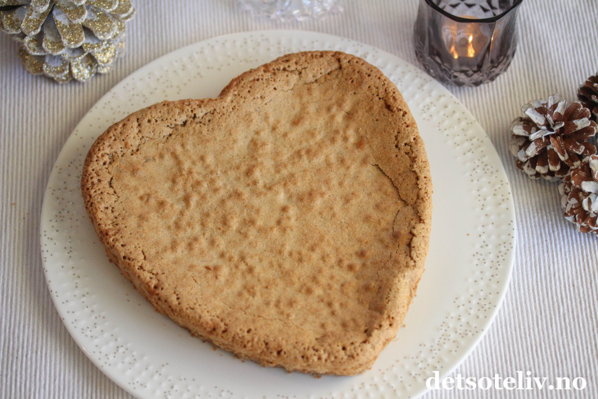 ♥ Som du ser, har jeg brukt hjerteform i stedet for rund form. Hjerteformen jeg brukte tilsvarer omtrent rund form som er 24 cm i diameter.