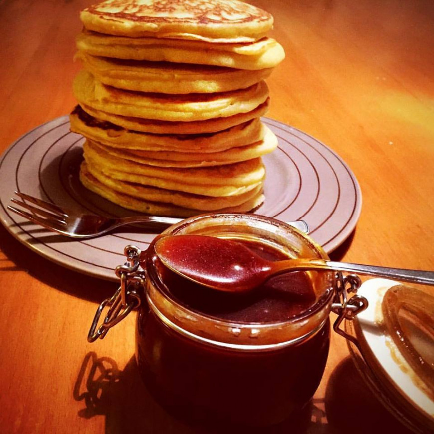 Oppskriften gir 16 stk pancakes og en liten krukke med salt karamellsaus.