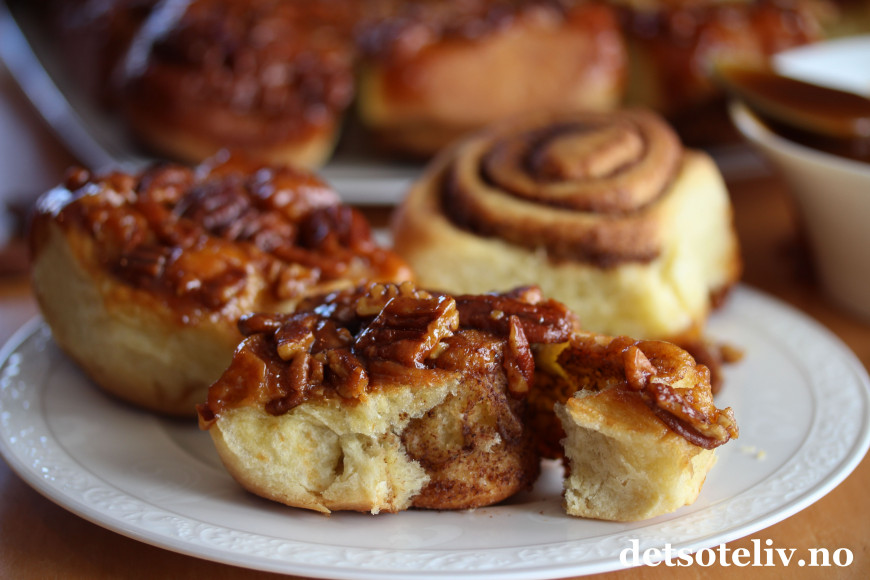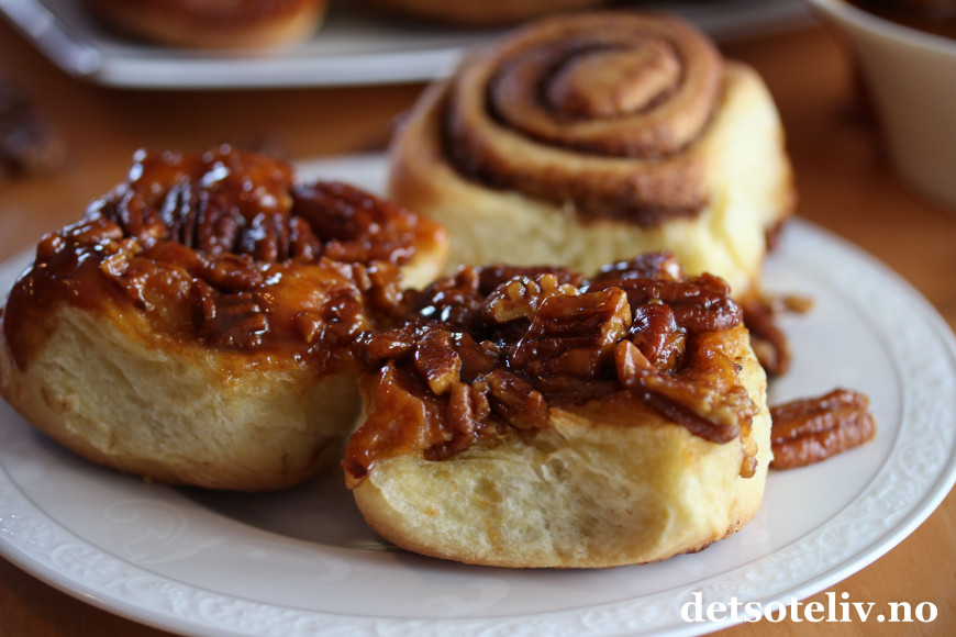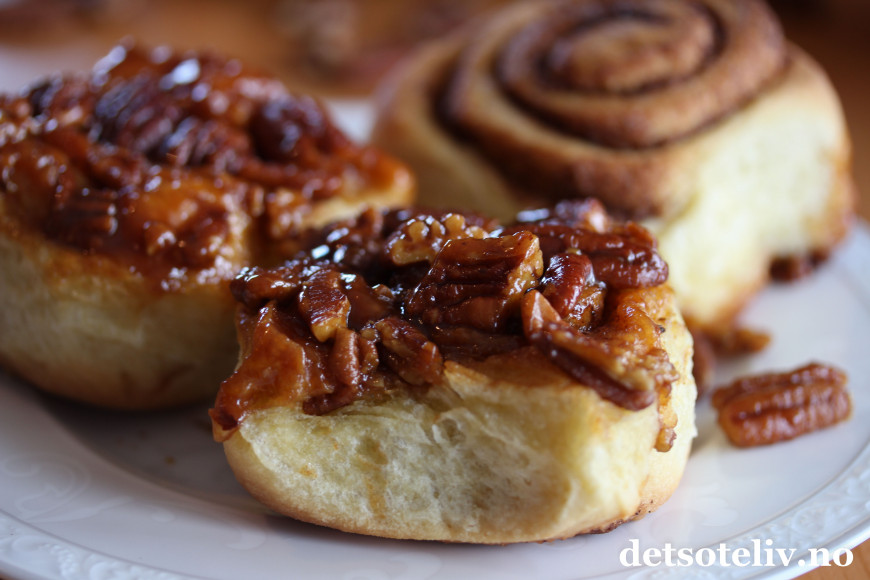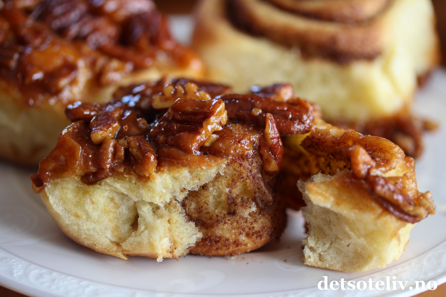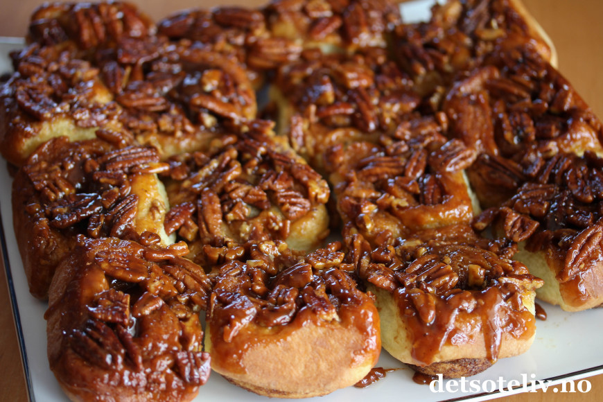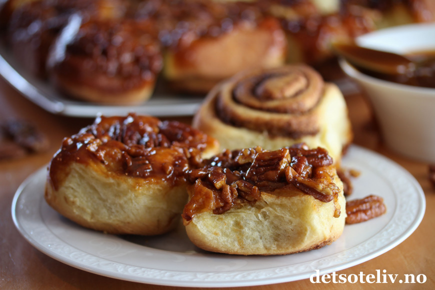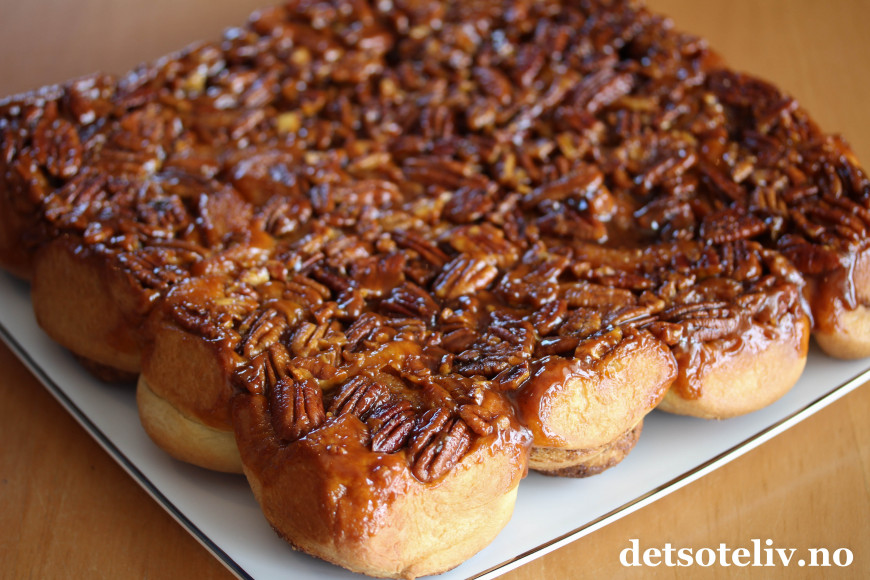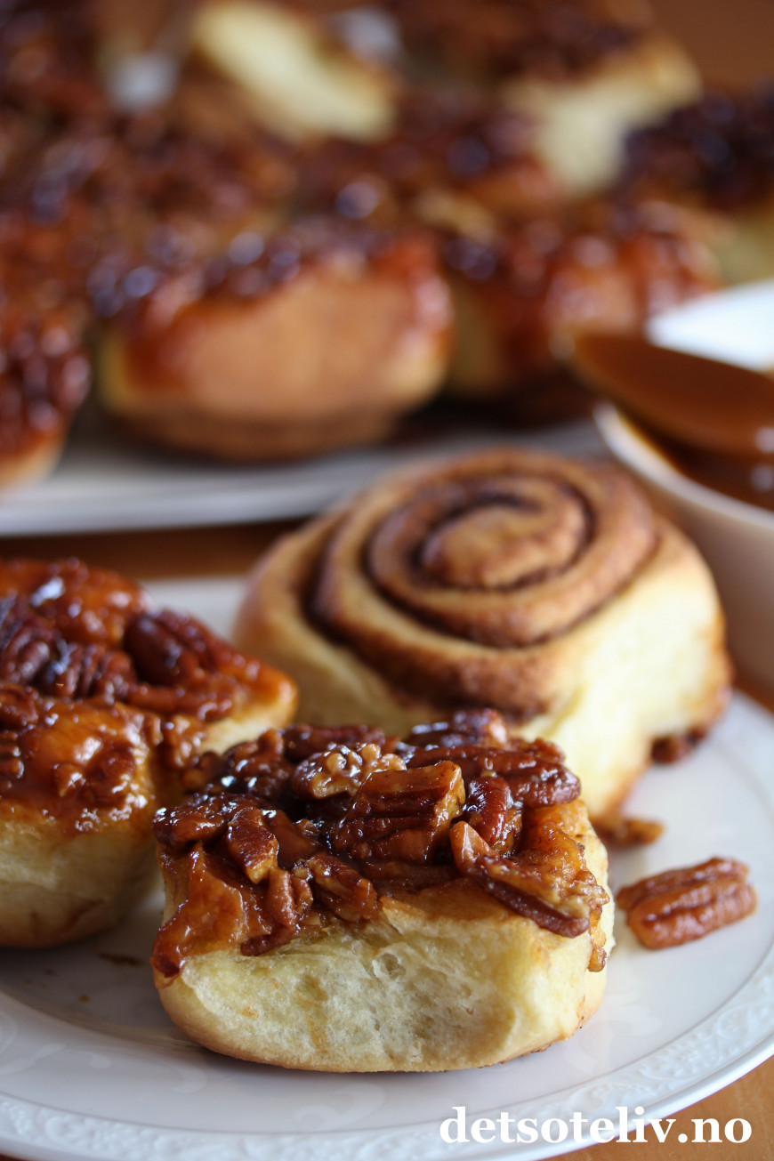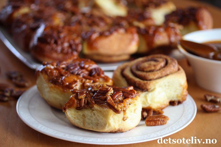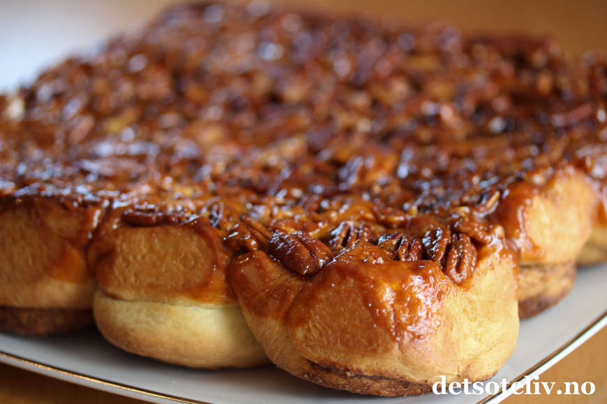 Vanvittig gode kanelboller med varm karamell og pekannøtter.