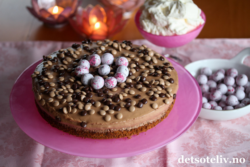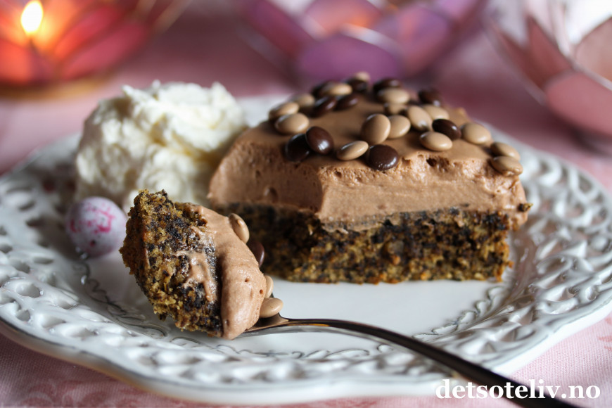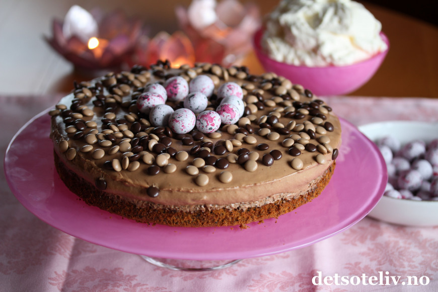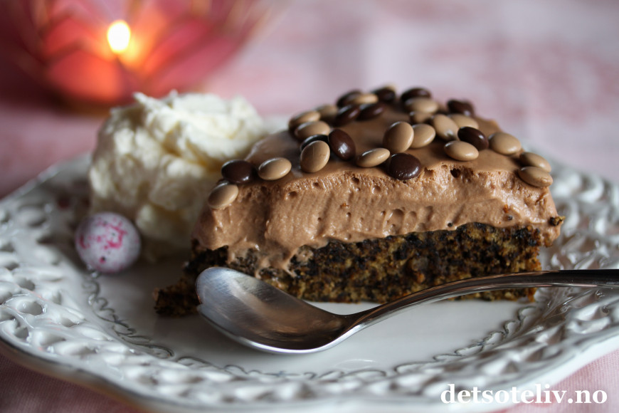Kaken er veldig god i seg selv, men blir enda bedre med et tykt lag kremete melkesjokolademousse på toppen!