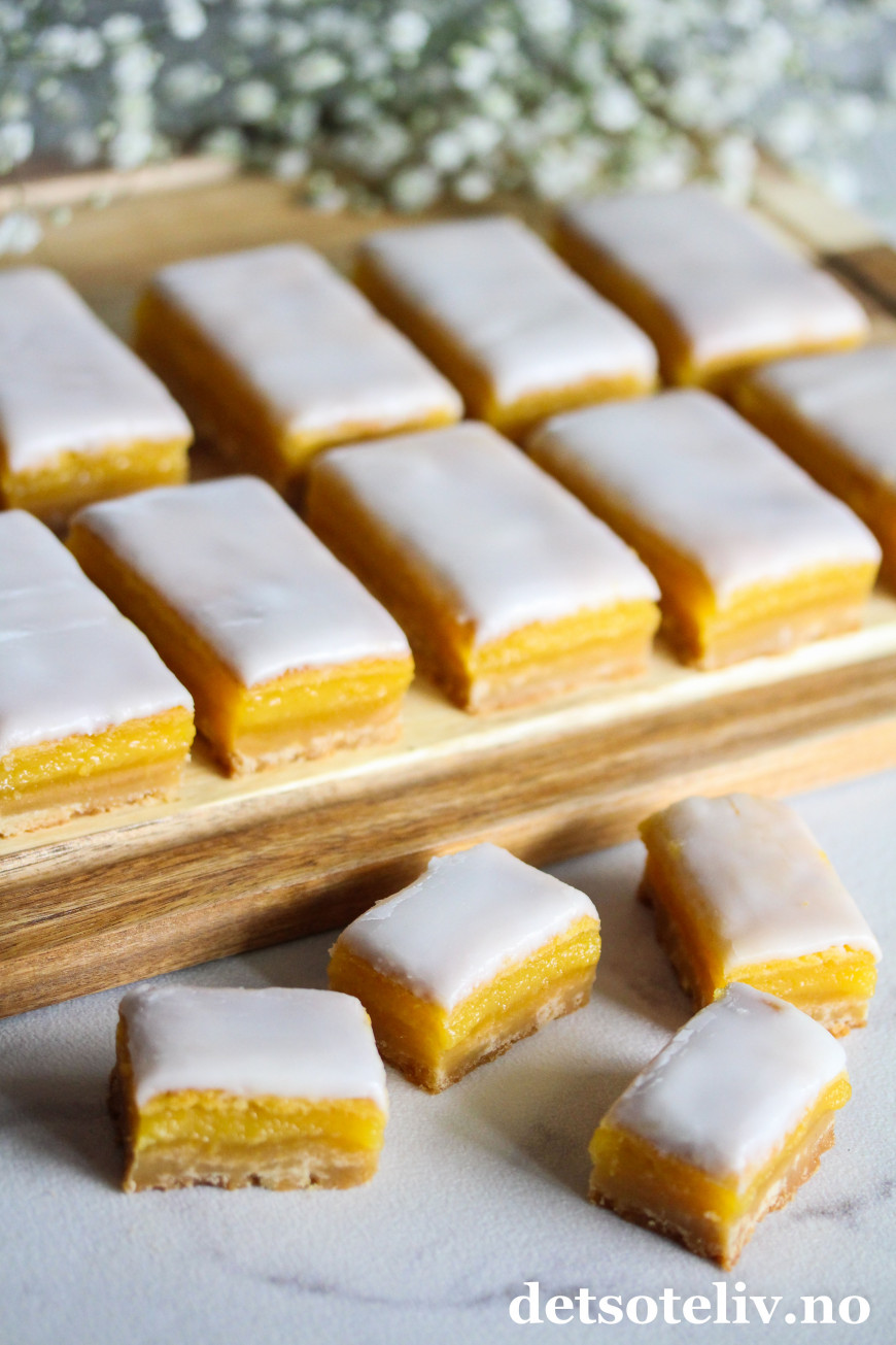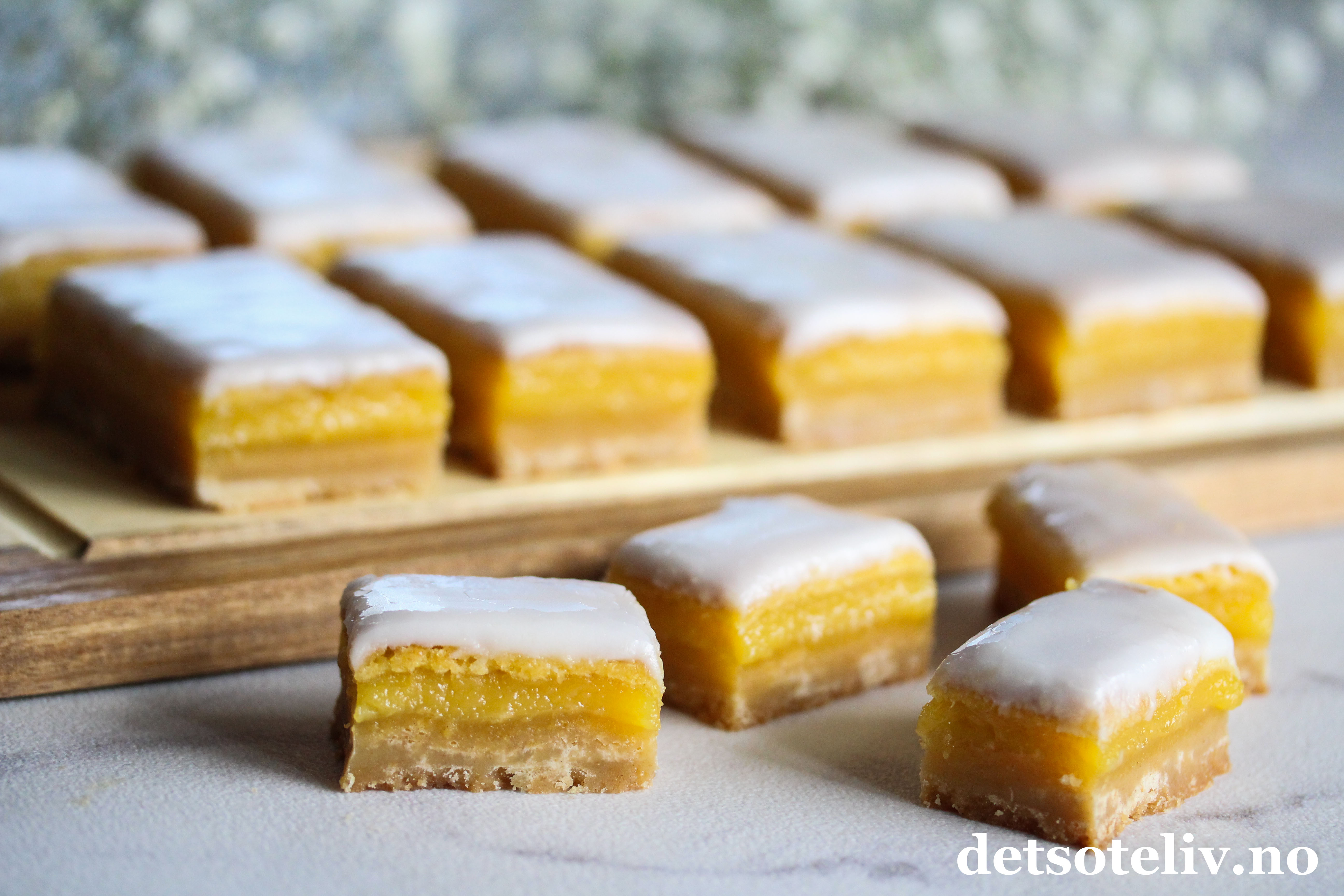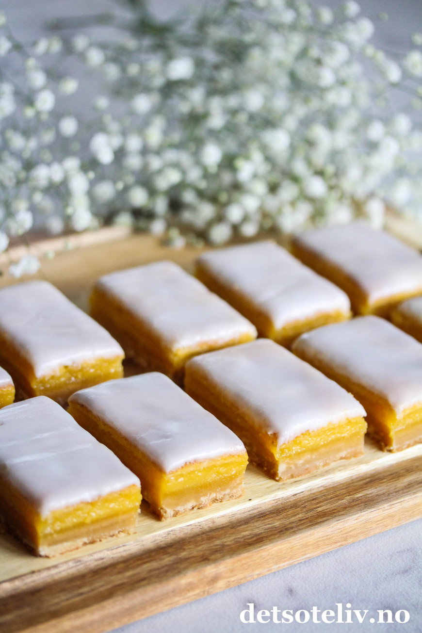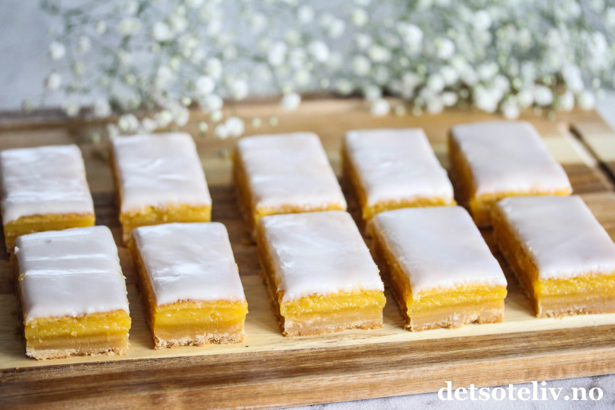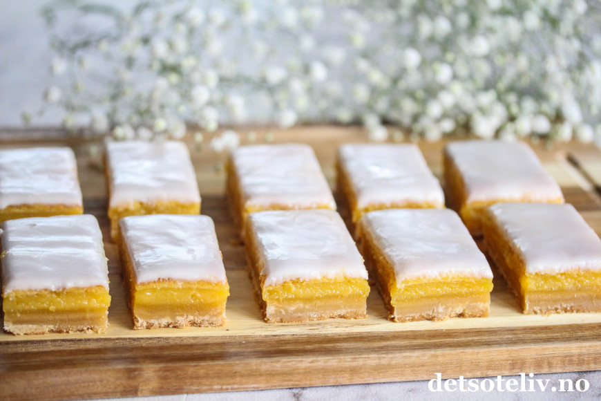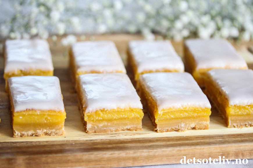 Oppskriften er til liten langpanne. Se også Lemon Coconut Bars (Sitronbarer med kokos).