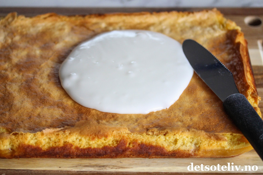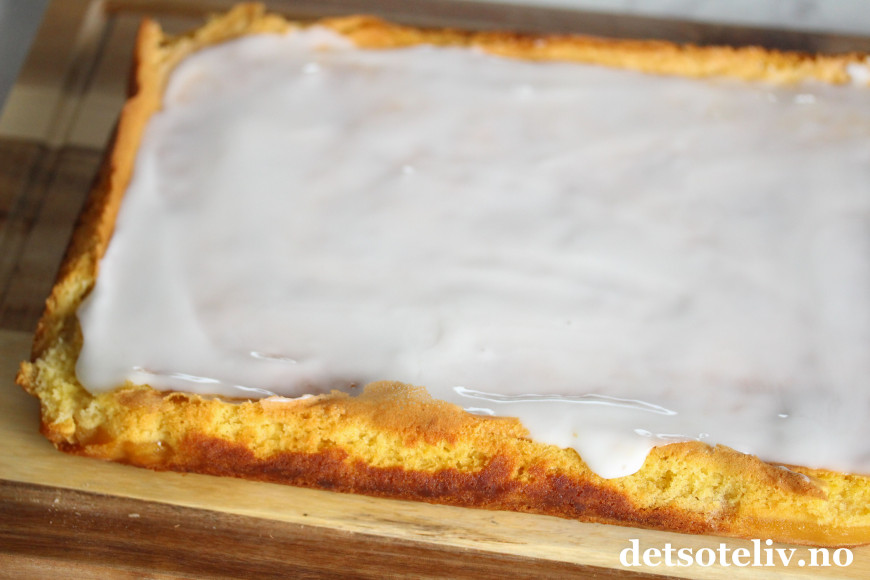 PS: Det kan være lurt å dyppe smørekniven i varmt vann for at det skal bli lettere å smøre melisglasuren jevnt utover kaken.