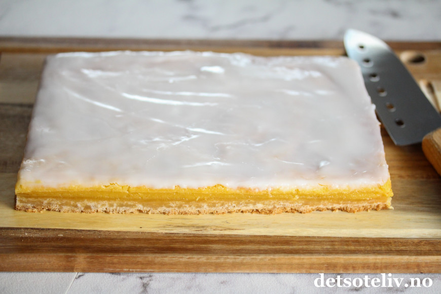 ♥ Det gir best resultat dersom du lar kaken stå i langpannen i kjøleskapet over natten. Da er du garantert at sitronfyllet har satt seg skikkelig og at kaken blir lett å dele. Kaken blir dessuten mye lettere å få ut av formen.