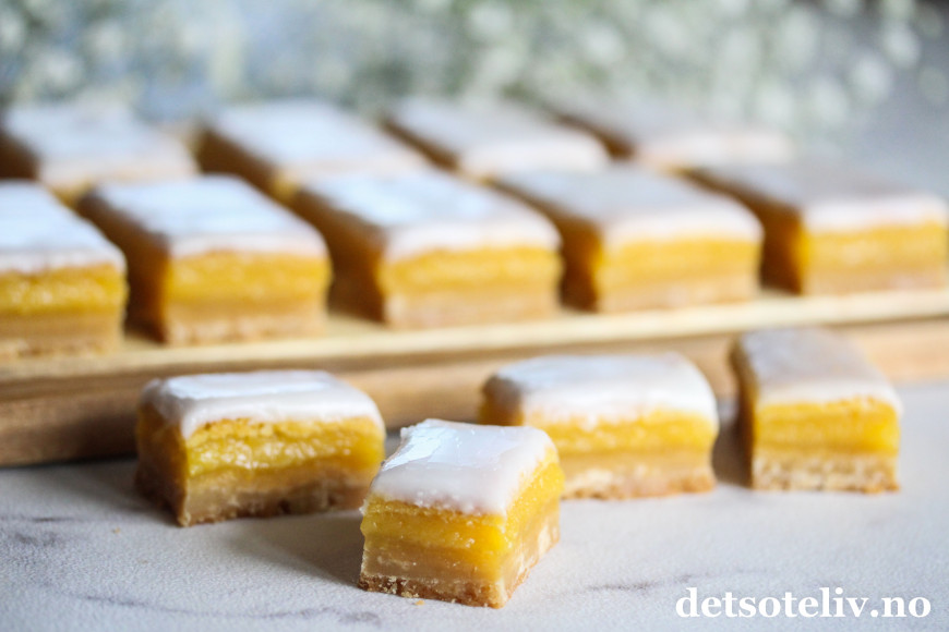 ♥ "Lemon Bars (Sitronbarer)" er fine å fryse.