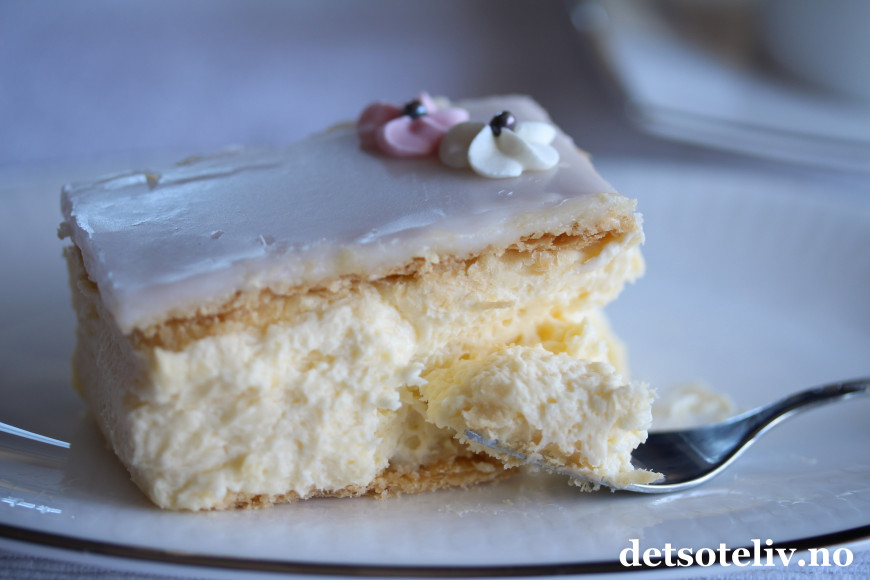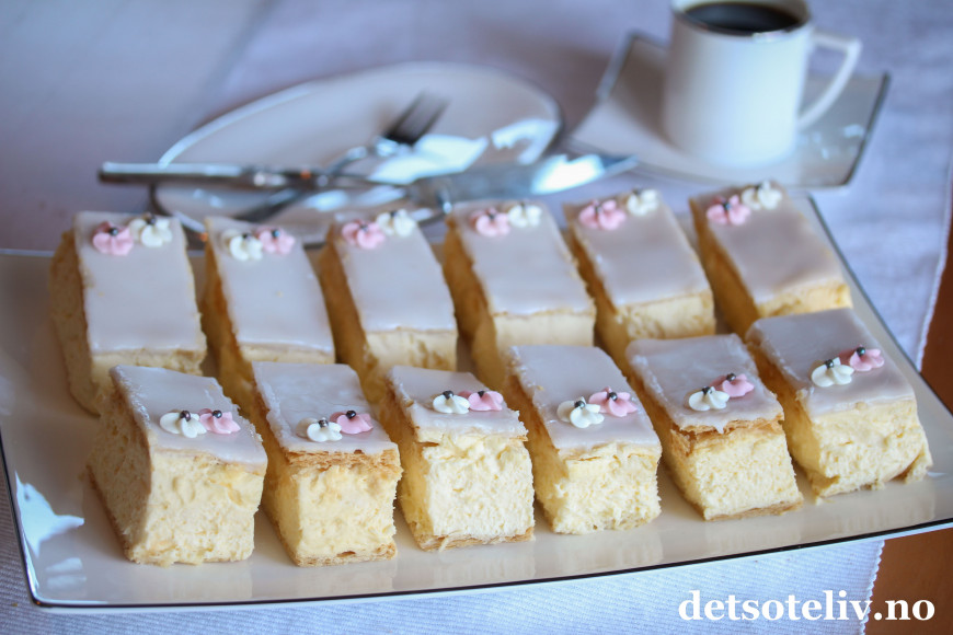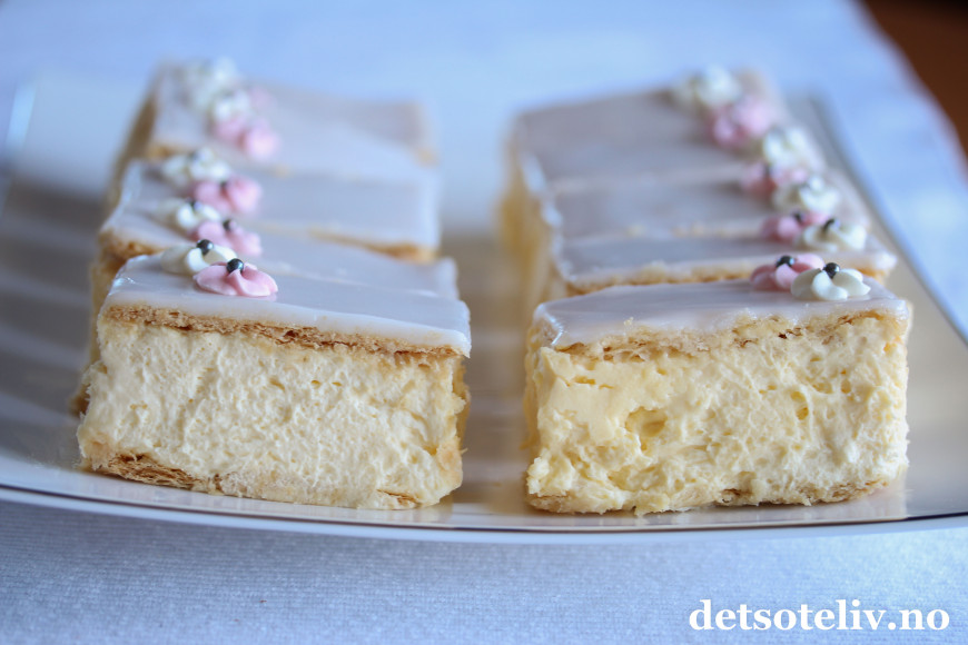 ♥ Napoleonskake oppbevares kjølig frem til servering. Kaken smaker best samme dag den er laget.