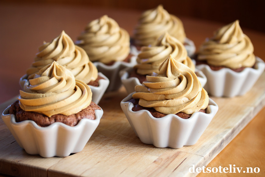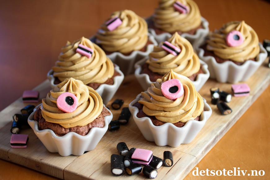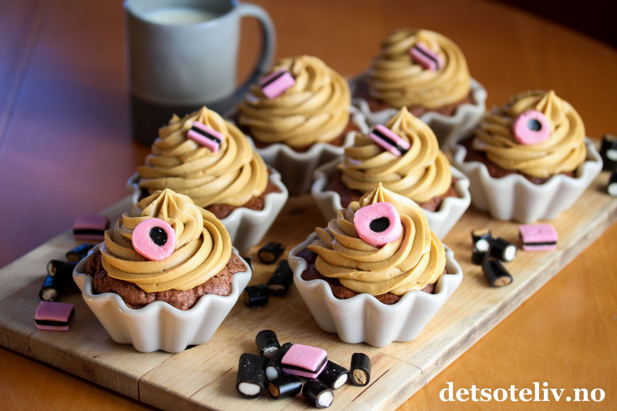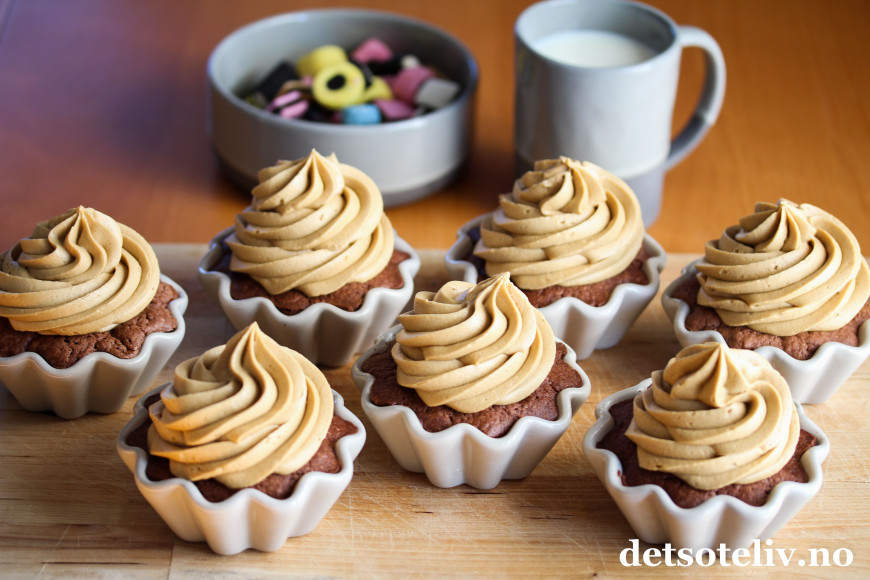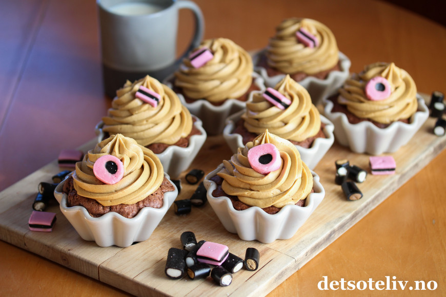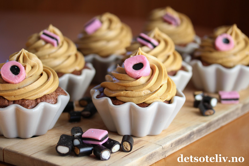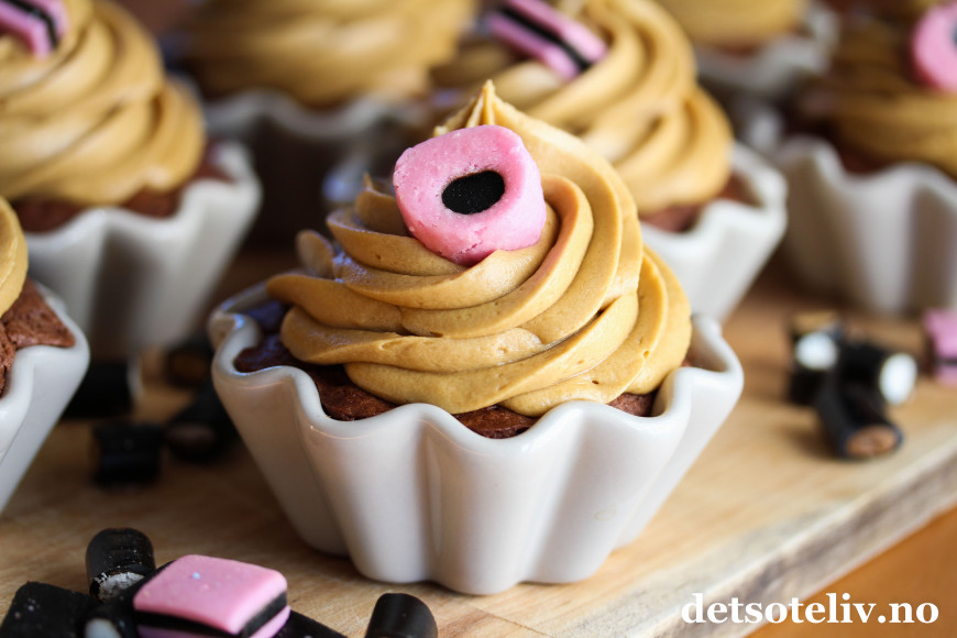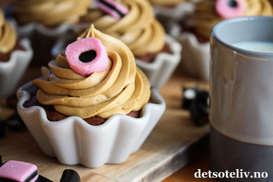 Myke sjokolademuffins og denne deilige lakriskremen smaker fantastisk godt sammen!