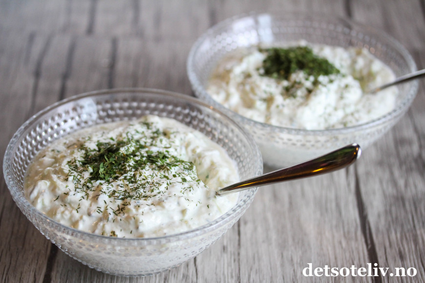 ♥ Tzatzikien kan oppbevares i et par dager. Dekk til med plastfolie og oppbevar i kjøleskapet.
