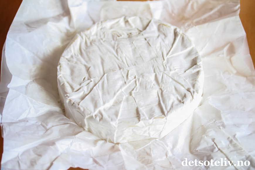 ♥ Som sagt har jeg her brukt osten Brie de Paris, som blant annet fås kjøpt hos Meny og Coop Mega. Osten finnes både i stor størrelse på 500 g som jeg har brukt her, og i mindre størrelse på 250 g.