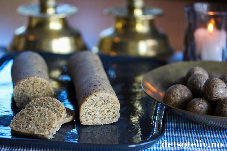 Men daddelmarsipan er også et kjekt supplement til sånne som meg, som har kakebordet fullt av vanlige kaker og konfekt som jeg nyter med god samvittighet, men som likevel setter pris på en sunnere variant innimellom.