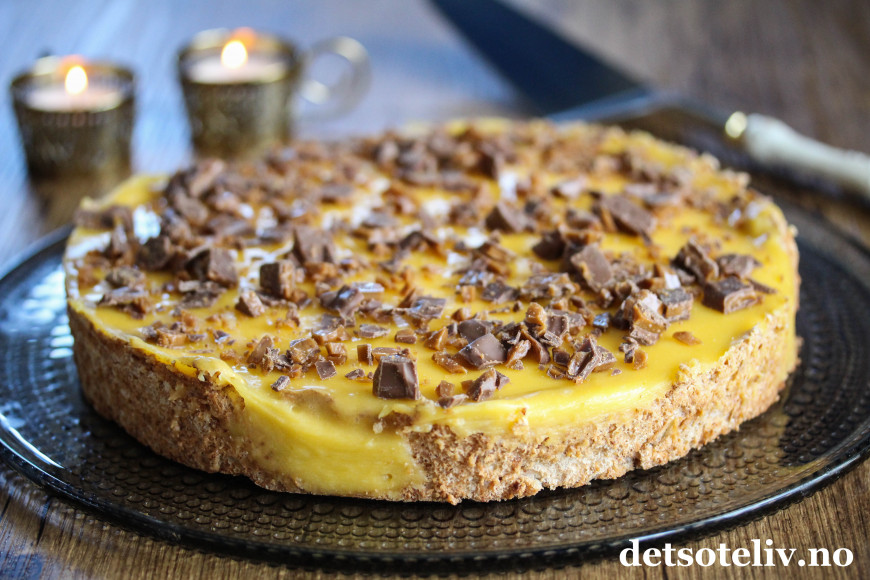 ♥ Den gule kremen vil tykne ytterligere når kaken står i kjøleskapet.