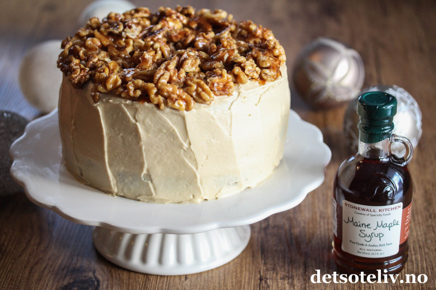 ♥ Lønnesirup gir fantastisk deilig smak til denne kaken! Jeg bruker her Maine Maple Syrup fra Stonewall Kitchen, som blant annet fås kjøpt hos mange av butikkene til Meny og Bunnpris.