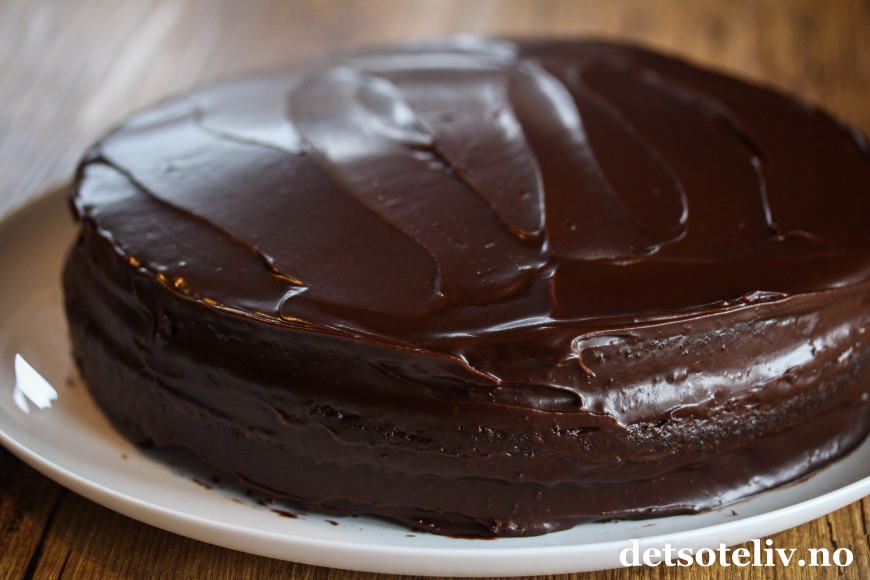 Fulgte oppskriften fra punkt til prikke, og kaken ble super med den digge, silkemyke glasuren på.