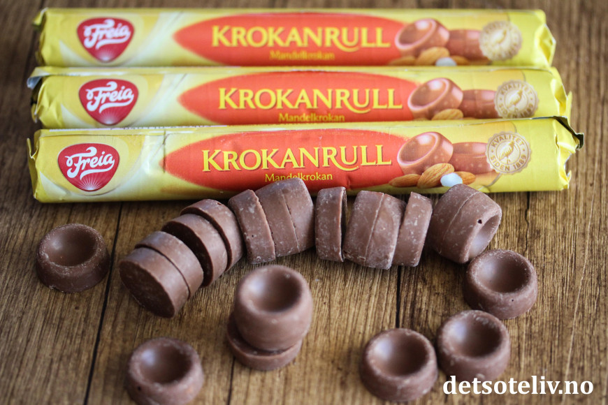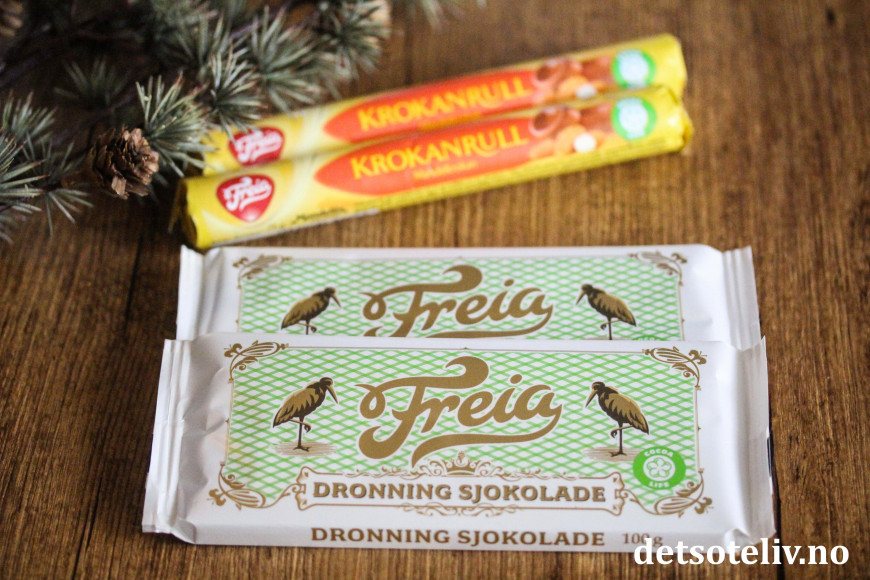 ♥ Både Dronning kokesjokolade og Krokanrull er fra Freia og fås kjøpt i de aller fleste dagligvarebutikker.