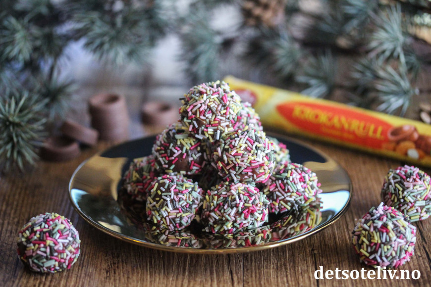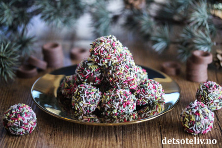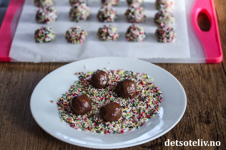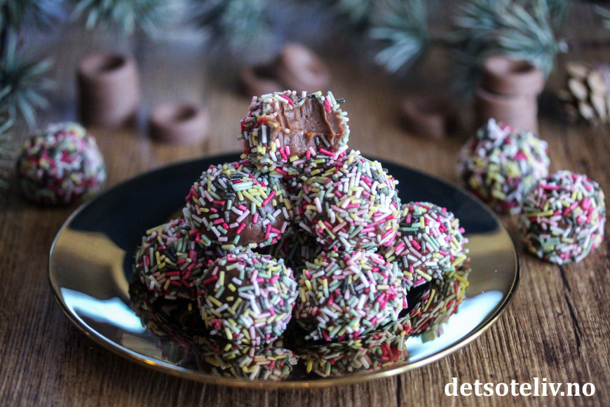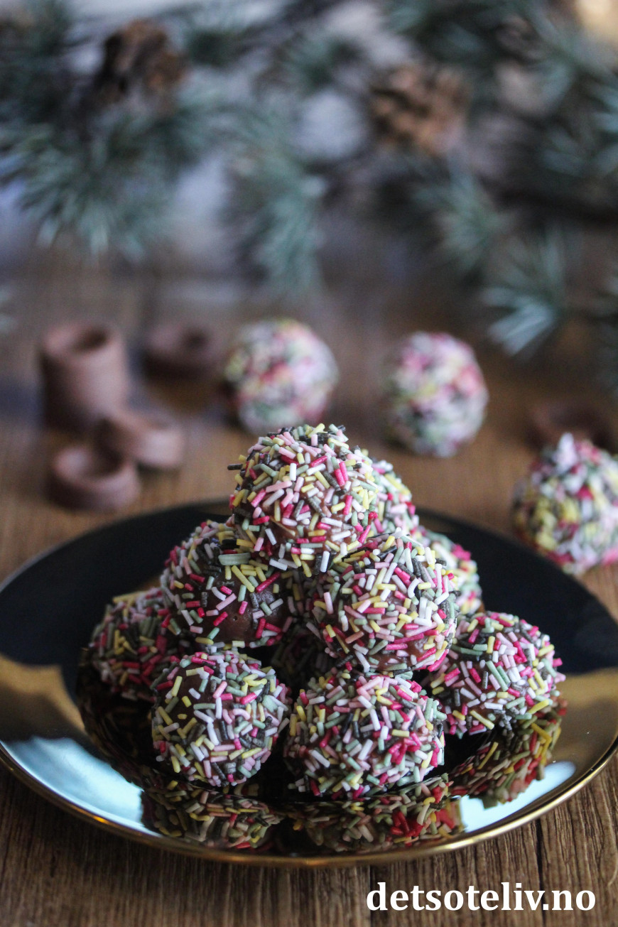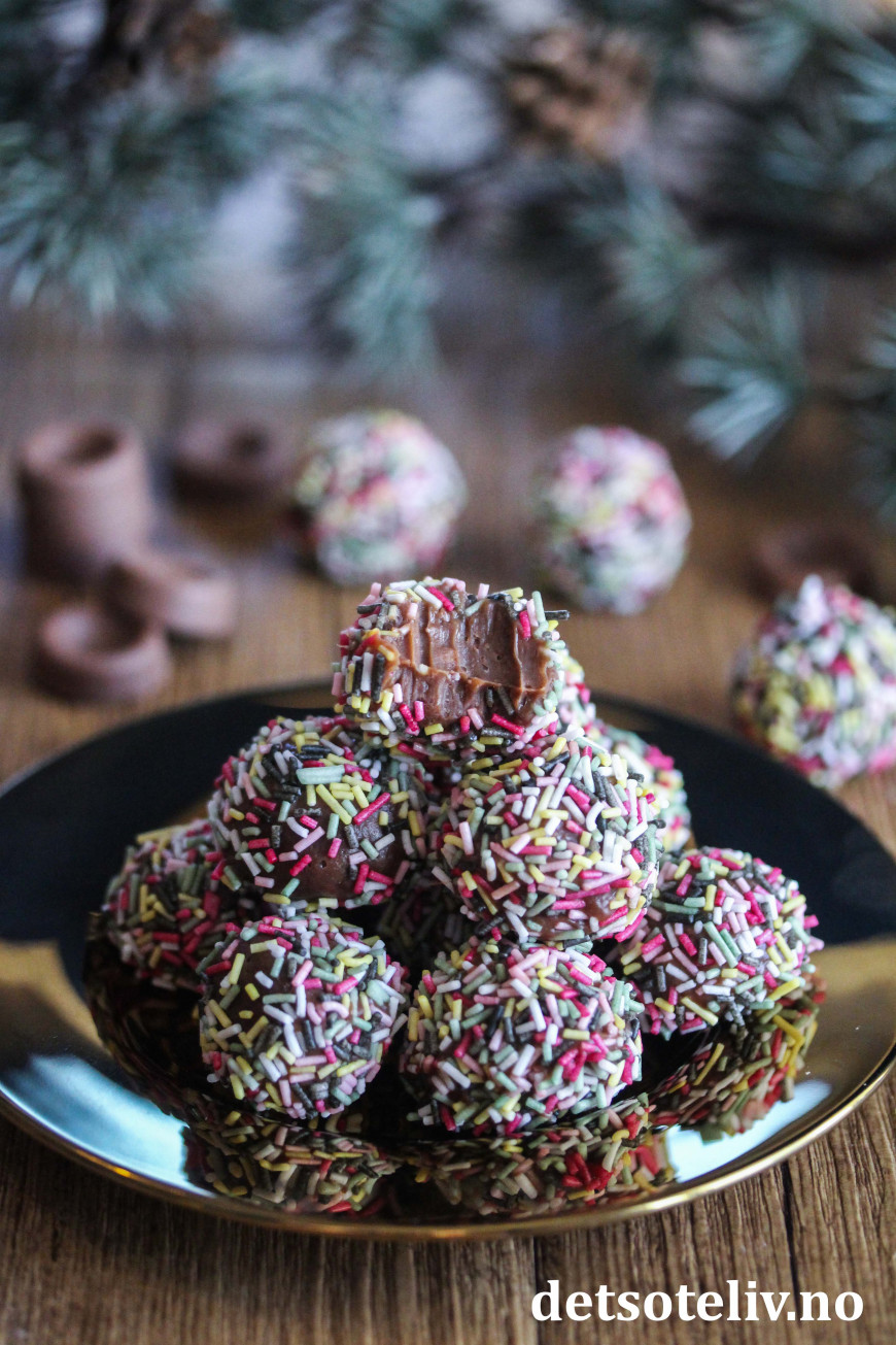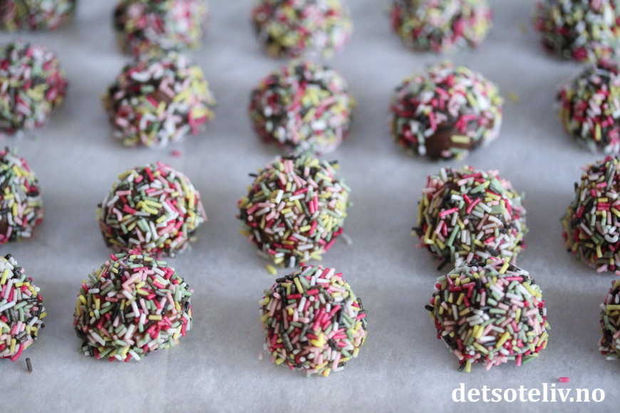 Trill gjerne sjokoladetrøflene i fargerikt kakestrøssel!