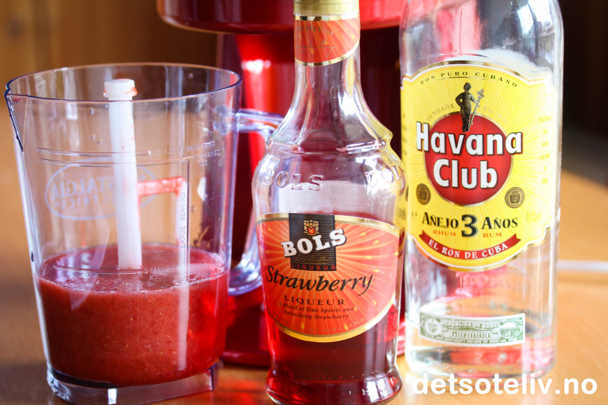 ♥ Både hvit rom (Bacardi bianca eller Havana Club 1- eller 3-årig) og jordbærlikør fås kjøpt på polet. Det går fint å lage drinken med bare rom og utelate jordbærlikøren.