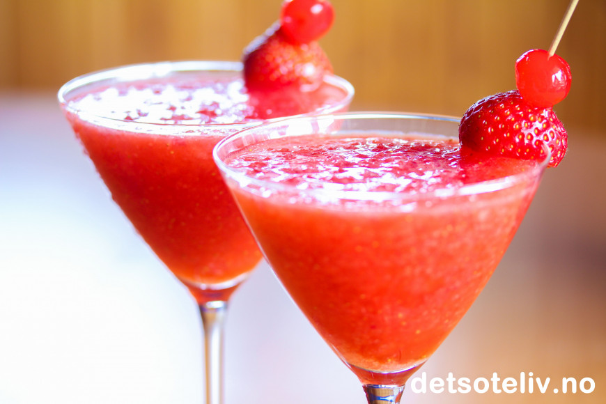 Mange har spurt meg om oppskriften på "Strawberry Daiquiri Slush". Oppskriften er veldig enkel og det er ikke så viktig med nøyaktige mål, men her viser jeg deg min versjon som jeg synes smaker helt fantastisk! Cluet er å bruke masse ekte jordbær, og ikke jordbærekstakt som ofte brukes i drinkene man får kjøpt på barer og utesteder. Med masse søte sommerjordbær blir jordbærsmaken søt og ekte - og drinken smaker helt fantastisk!