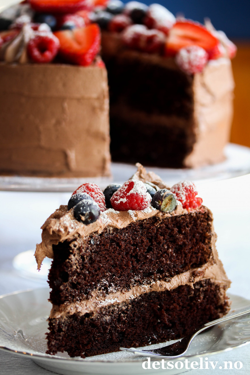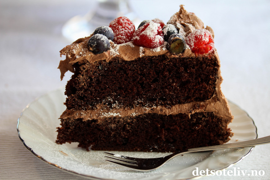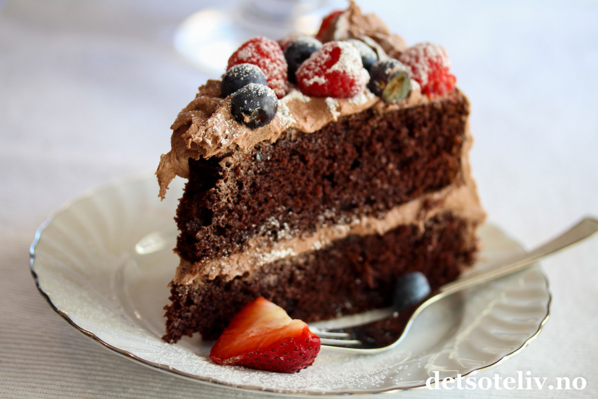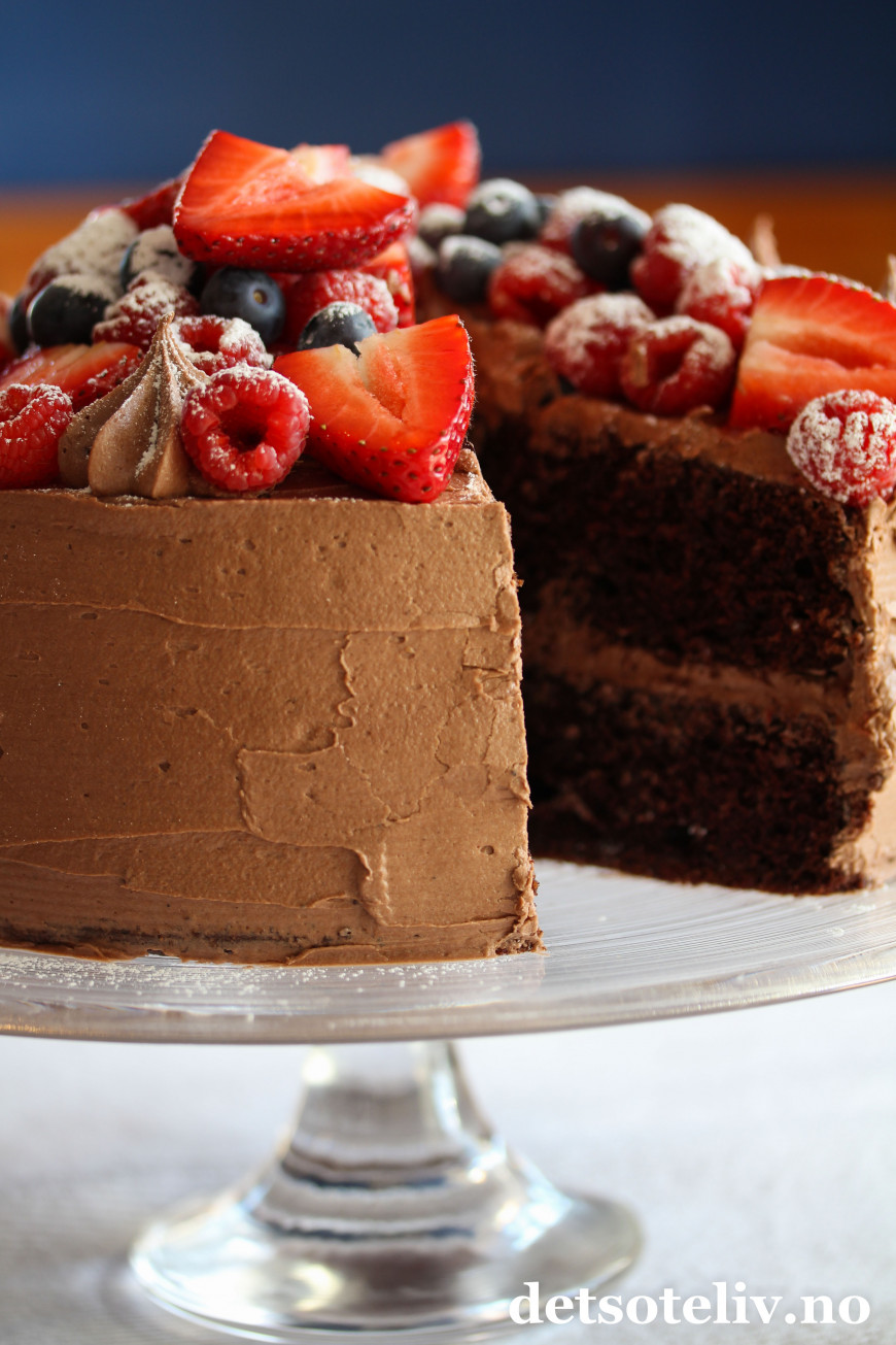 Saftig deilig sjokoladekake med masse friske, søte bær