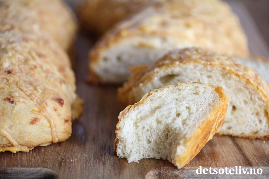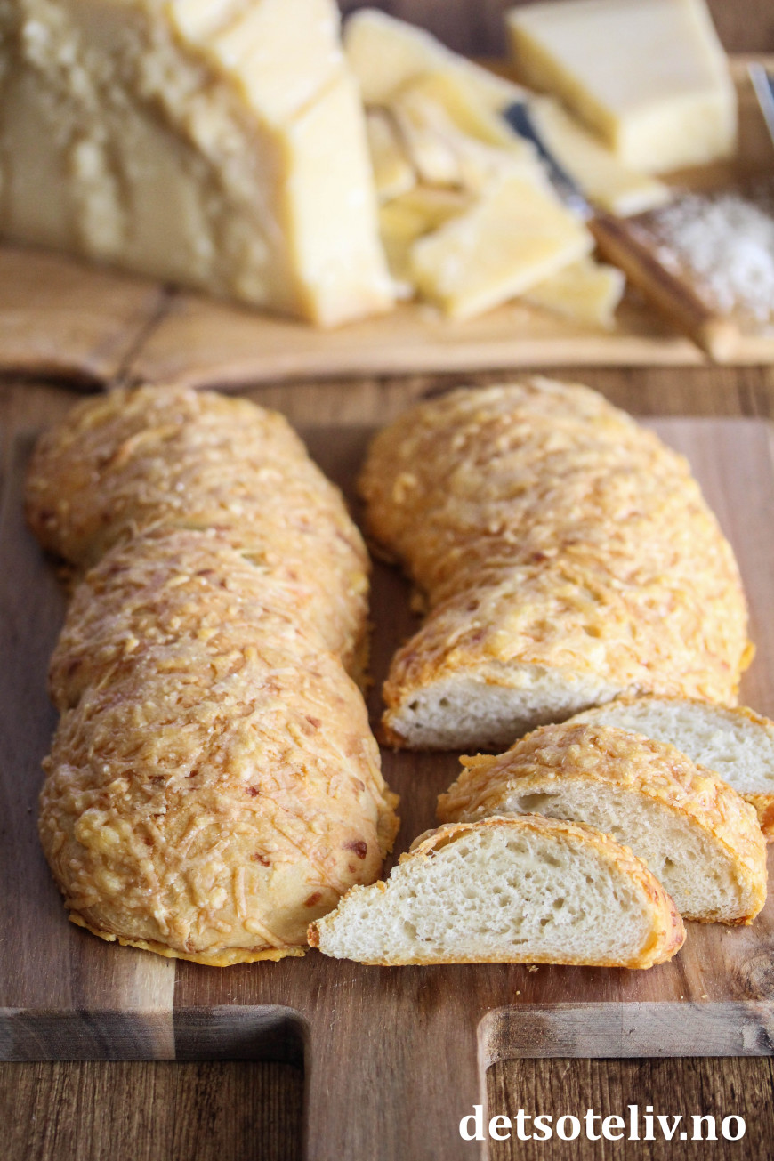 Hjemmebakt italiensk parmesanbrød blir supermykt inni og får en utrolig deilig, sprø osteskorpe.