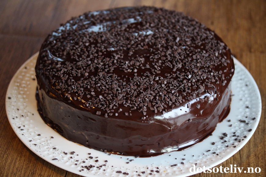 ♥ Det er like viktig at sjokoladeglasuren er HELT kald før du smører den på kremkaken. Siden sjokoladeglasuren må stå kaldt en stund, kan du gjerne lage den klar mens kaken steker og sette den i kjøleskapet.