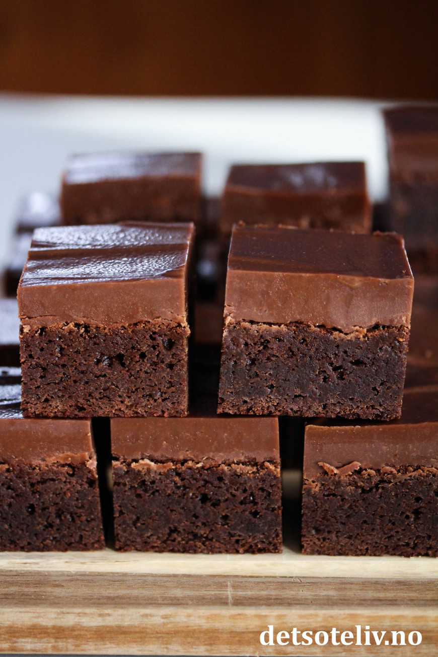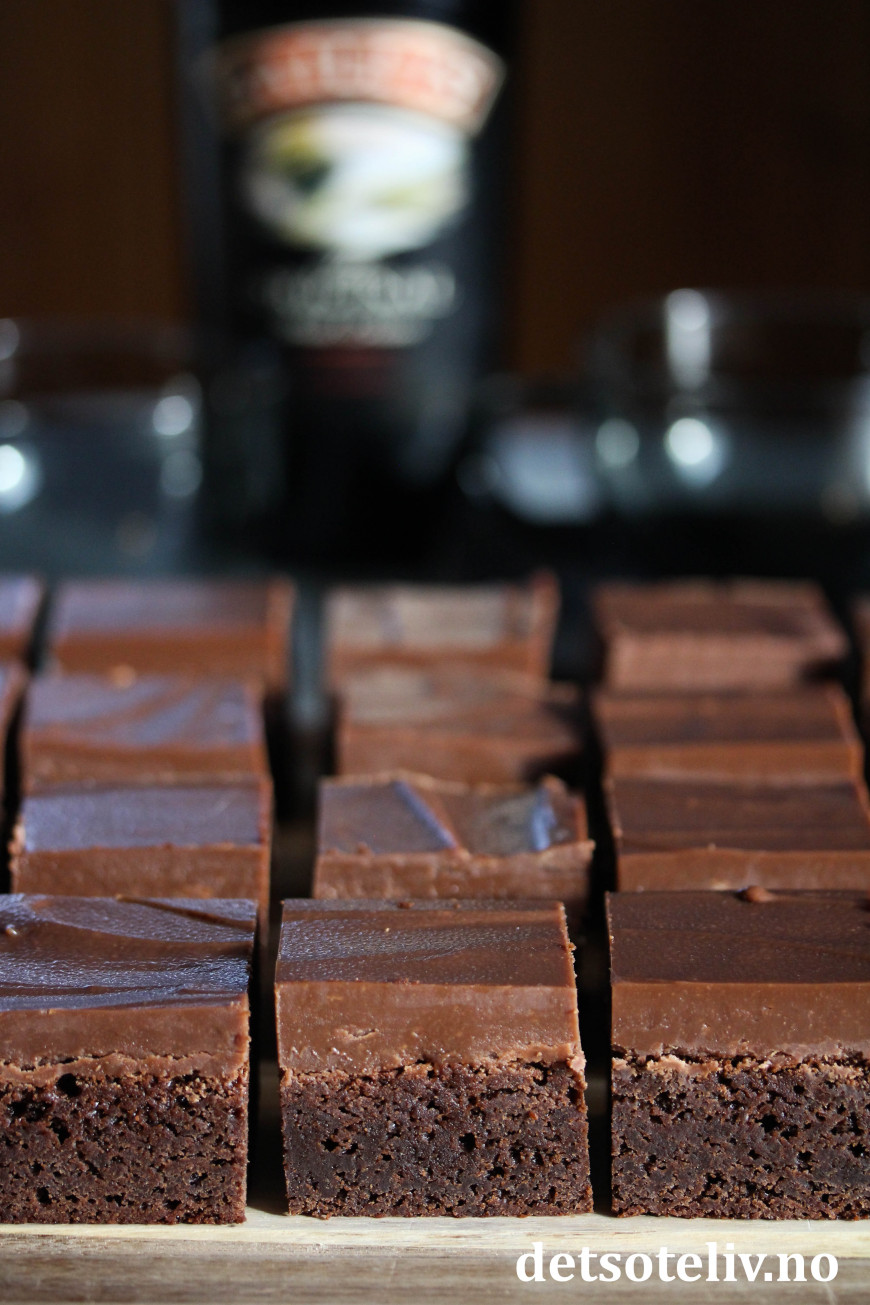 Her kommer noe godt til helgen! Dette er himmelsk gode, bløte brownies med kraftig sjokoladesmak, som dekkes med et tykt lag syyykt god glasur laget med melkesjokolade og Baileys.