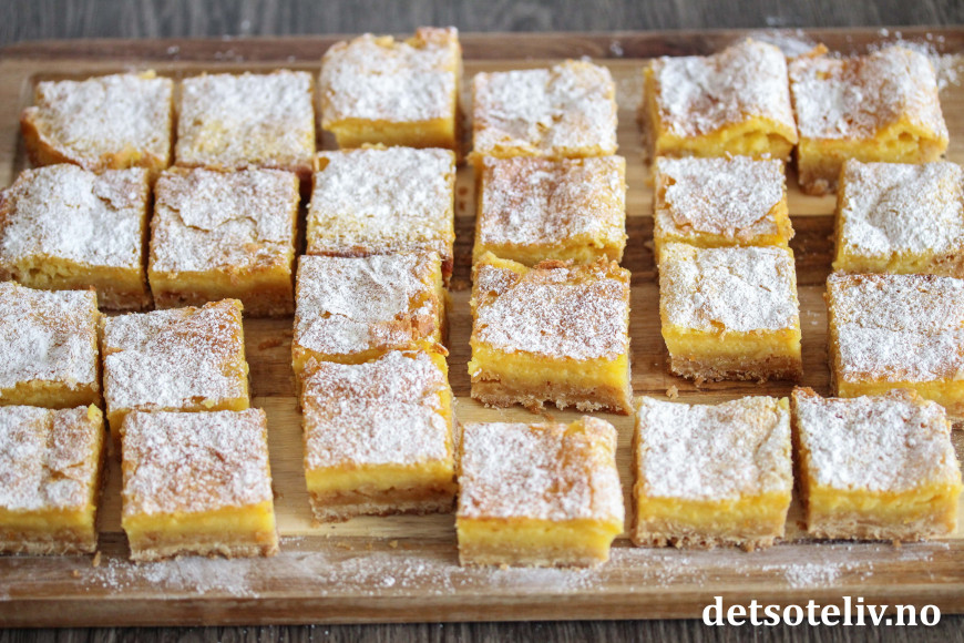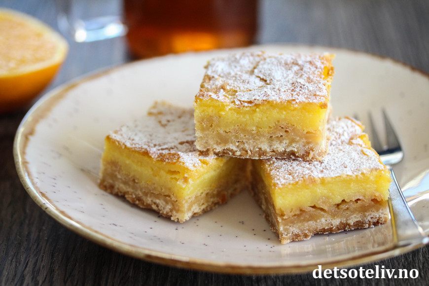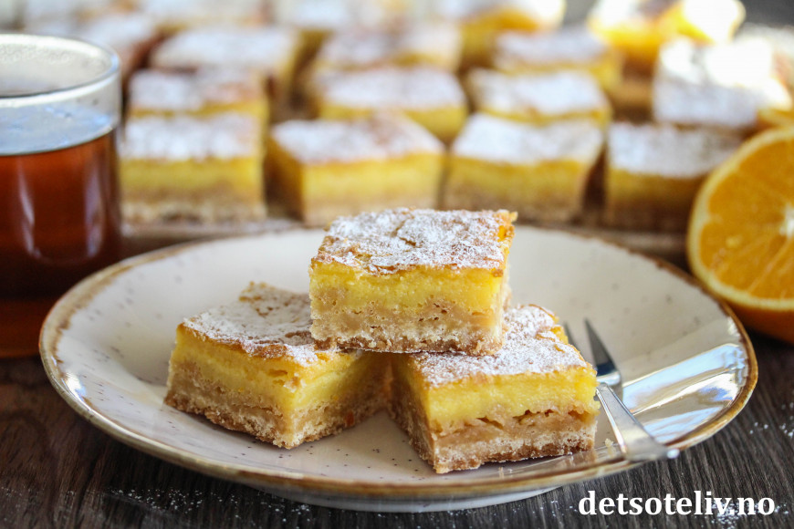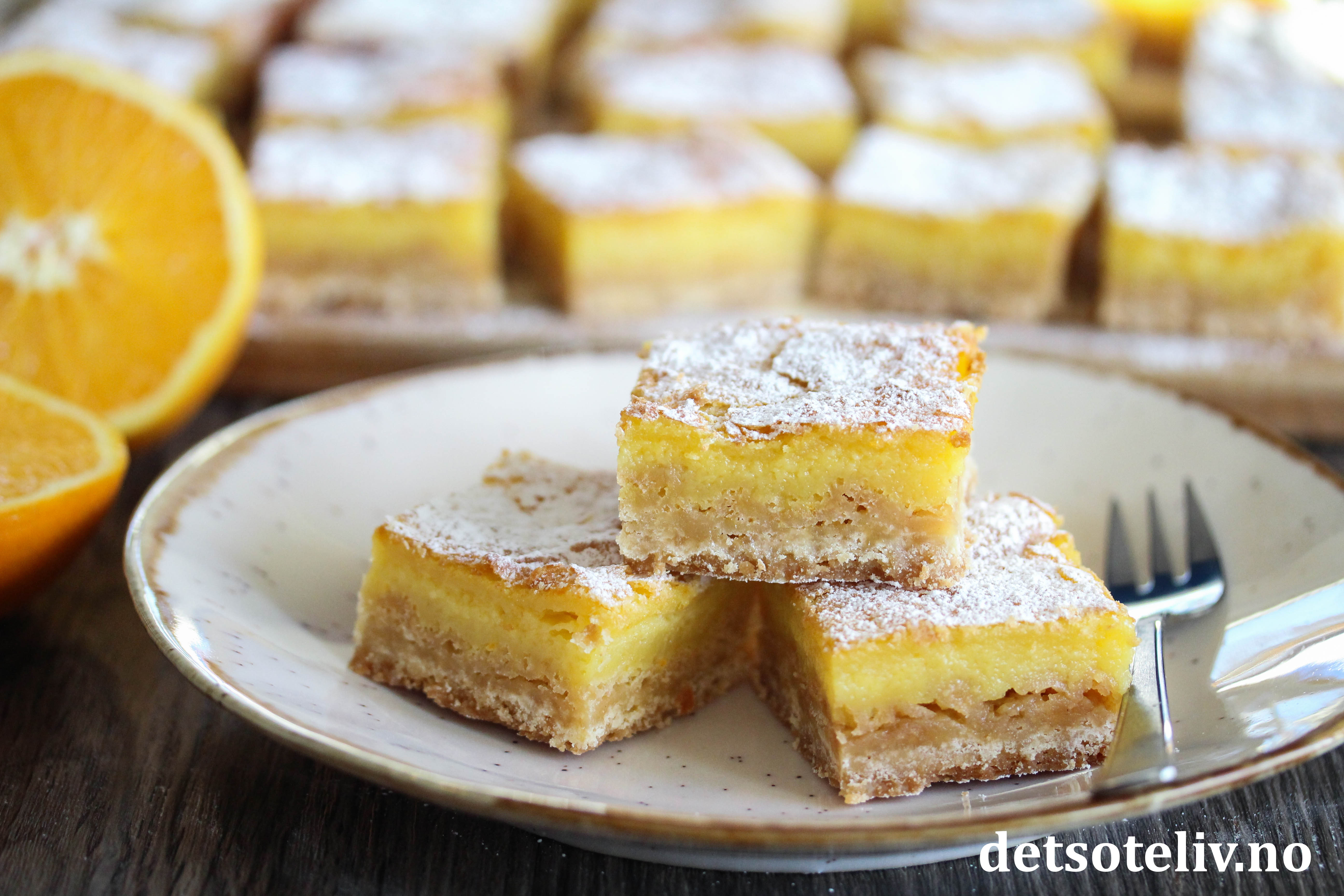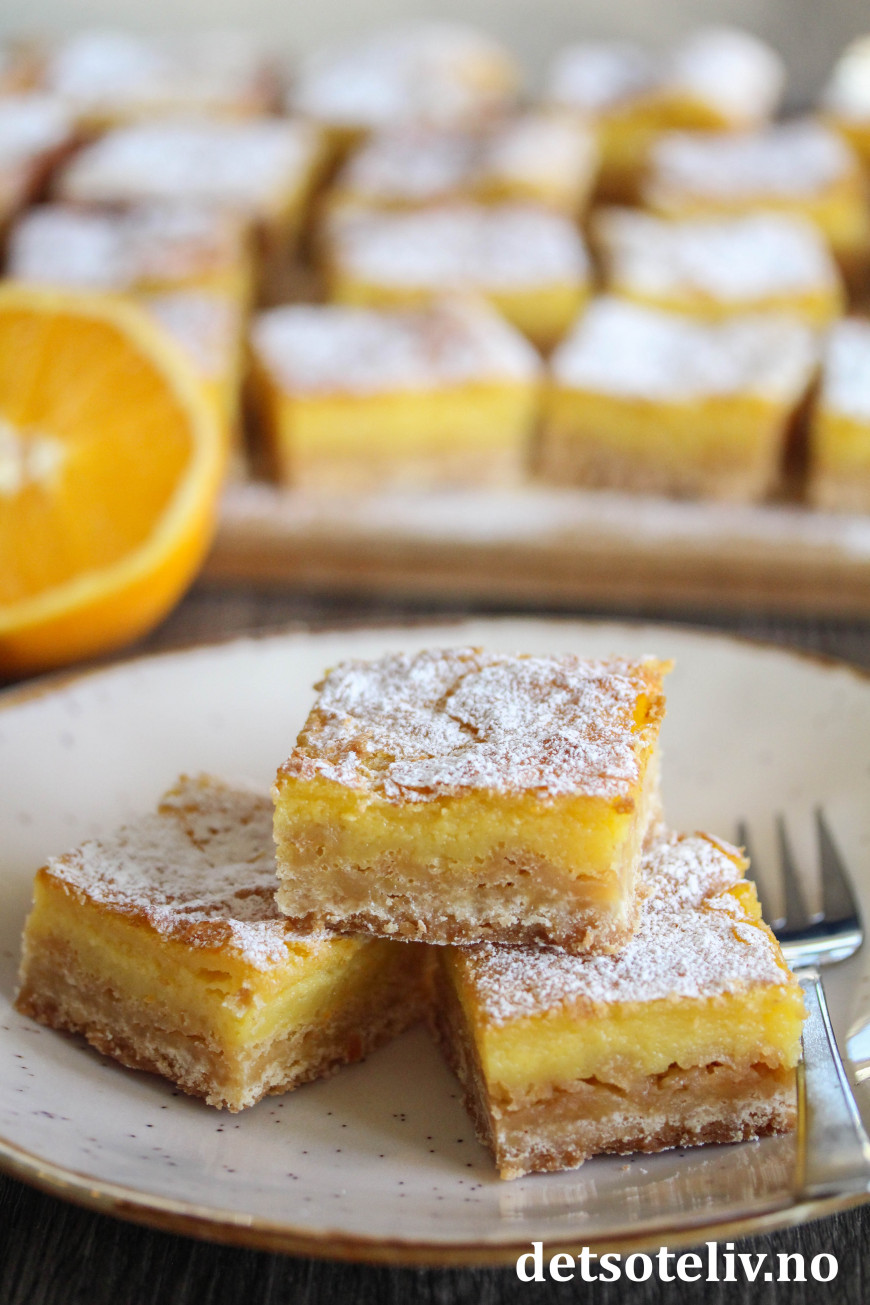 ♥ Se også Lemon Bars (Sitronbarer) som er basert på samme oppskrift, men med sitron i stedet for appelsin.
