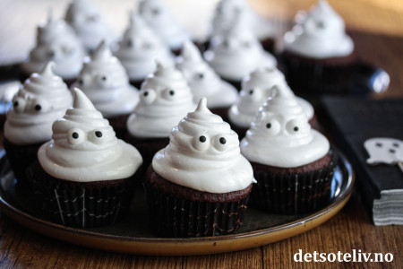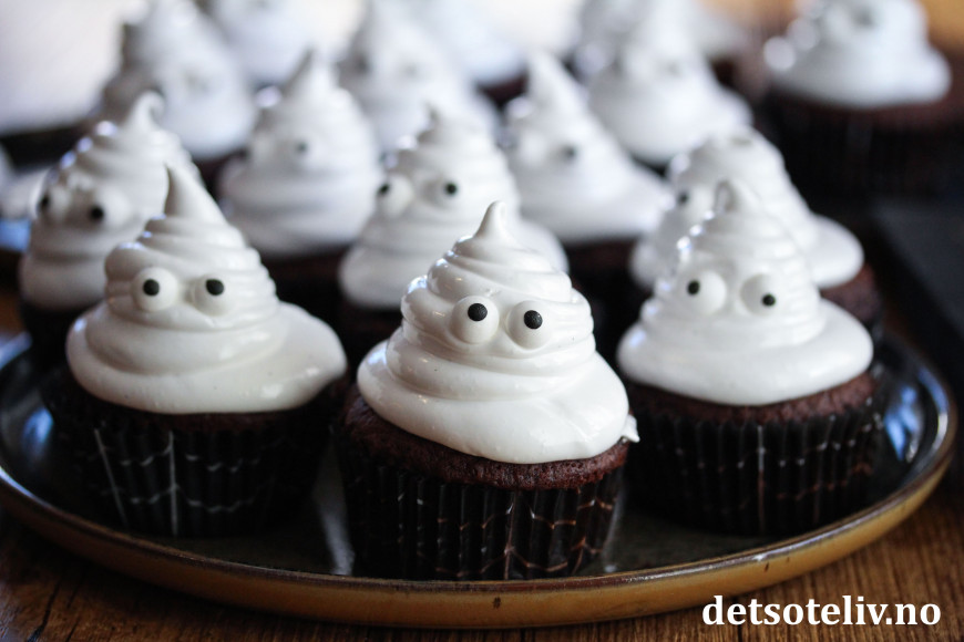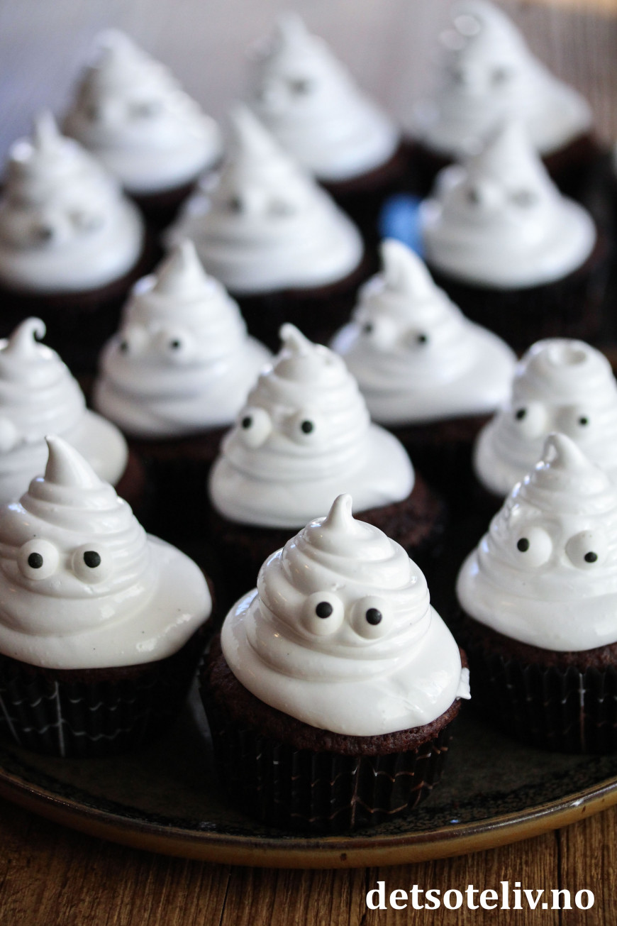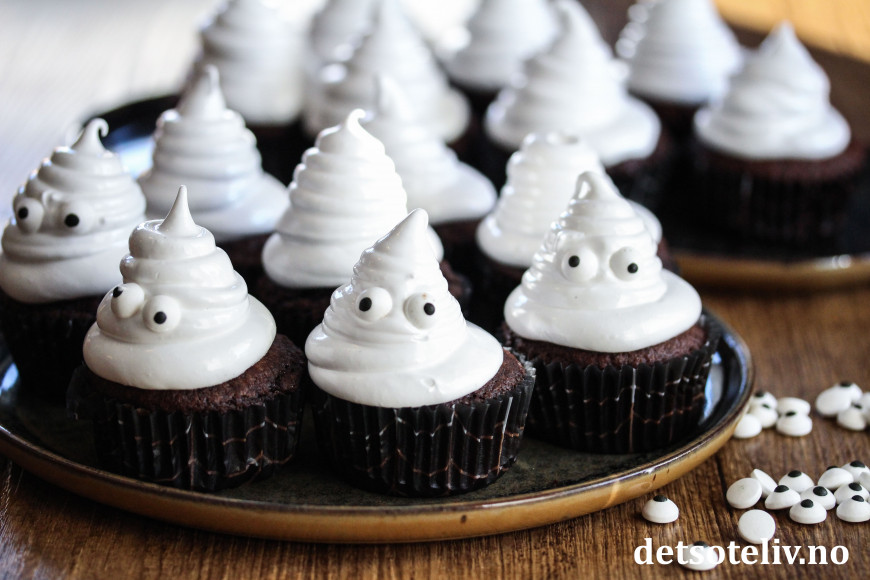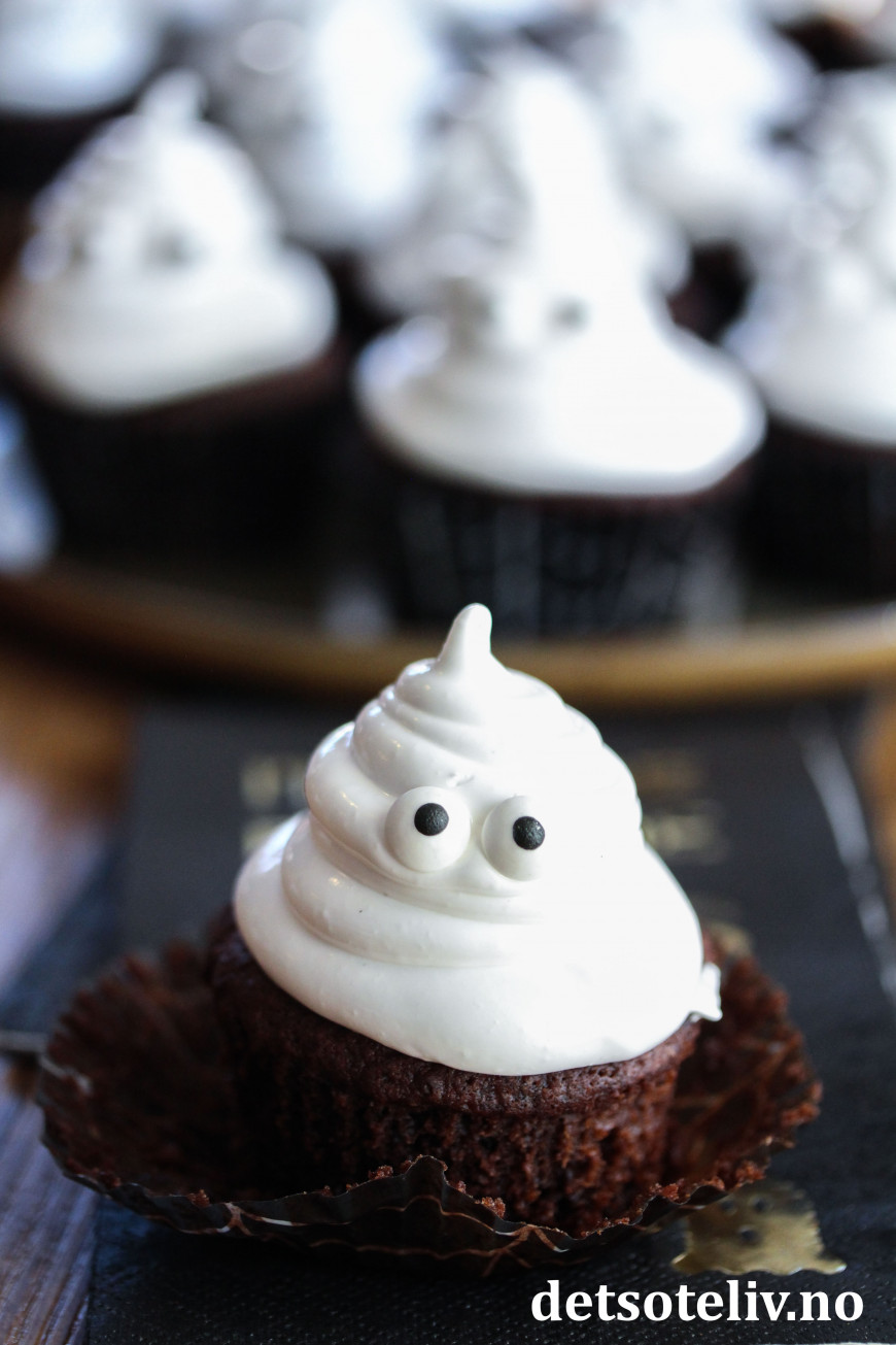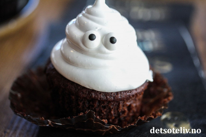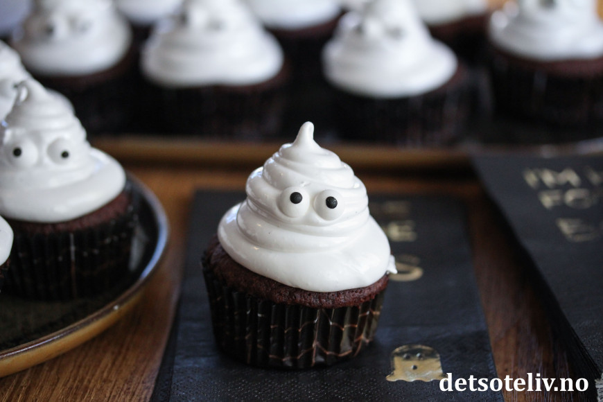 Voilà! Søte spøkelsescupcakes med marengskrem!