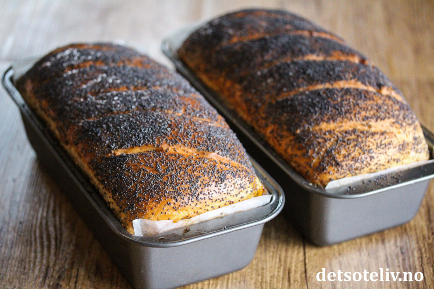 Pensle over brødene med sammenvispet egg og dryss over rikelig med valmuefrø.
