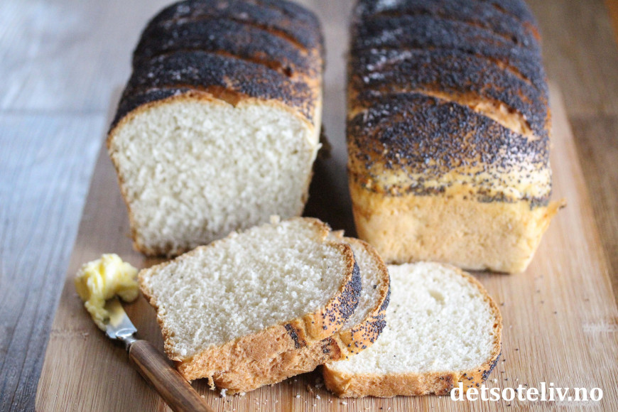 ♥ Se lignende oppskrift på Smørloff, som inneholder litt mer smør og melk og som drysses med mindre valmuefrø. Se også oppskrift på Fletteloff.