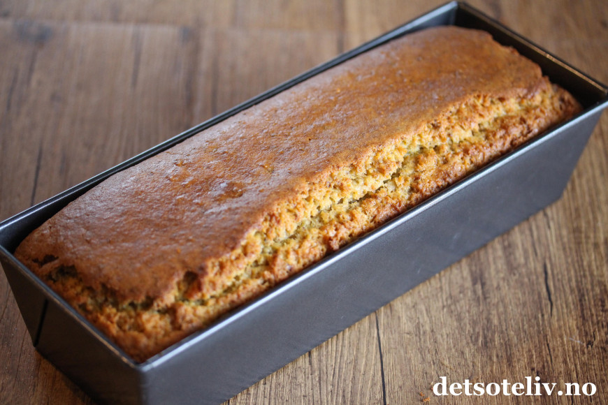 Stek kaken midt i ovnen ved 175°C i ca. 45-55 minutter (sjekk med en kakenål at kaken er helt gjennomstekt før du tar den ut av ovnen).