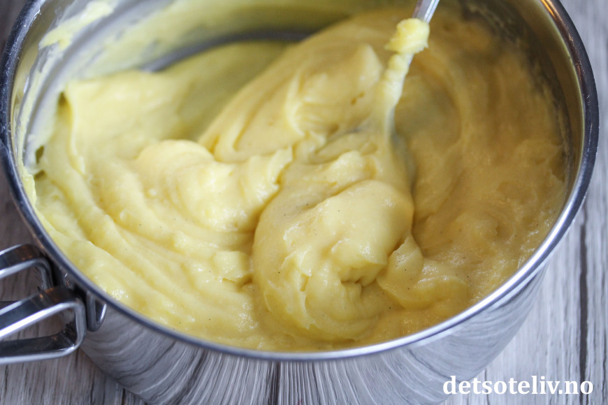 Ta kjelen av platen og la vaniljekremen avkjøles til romtemperatur. Rør av og til.