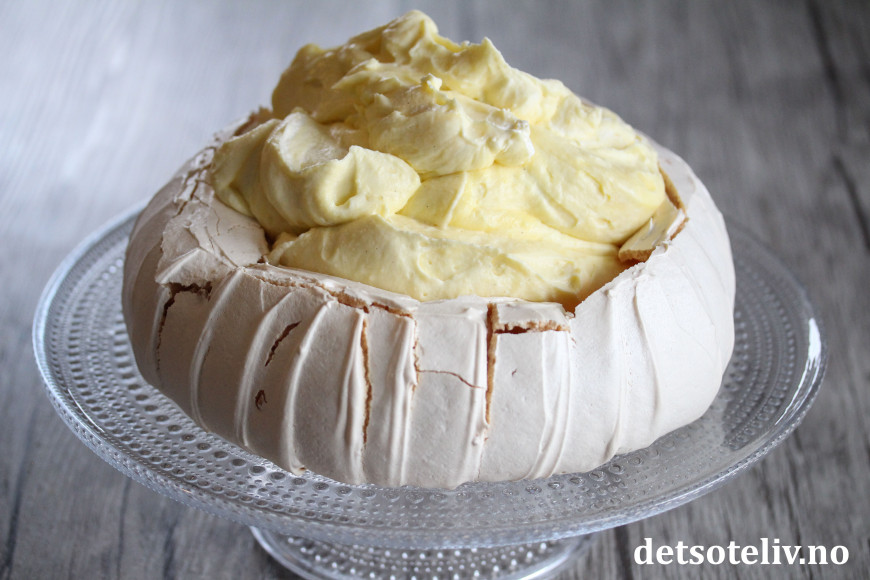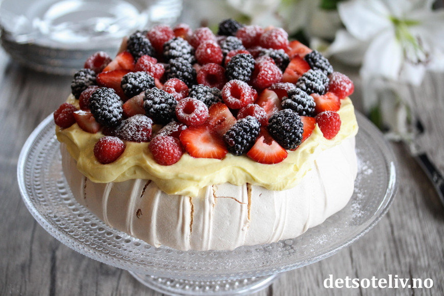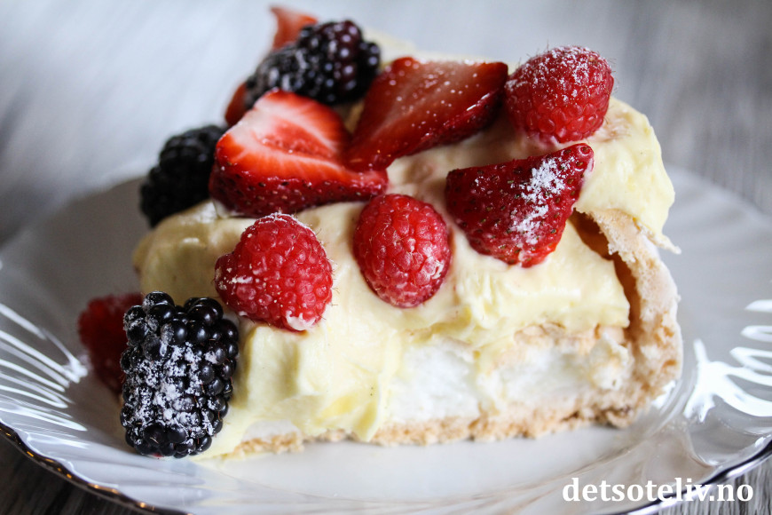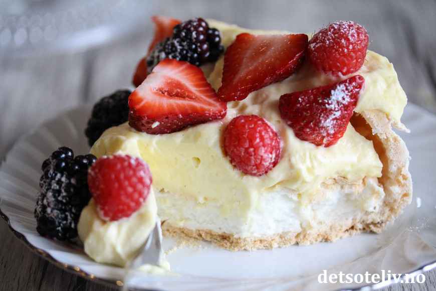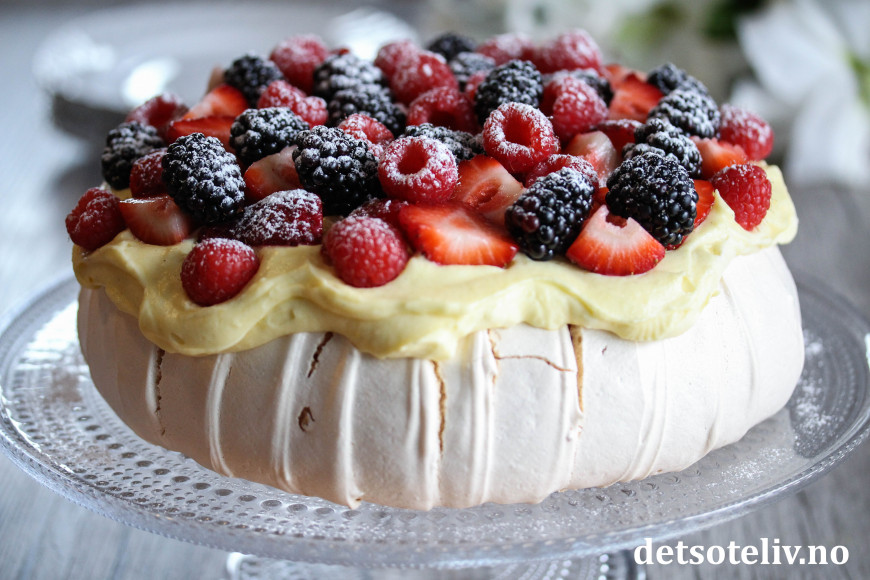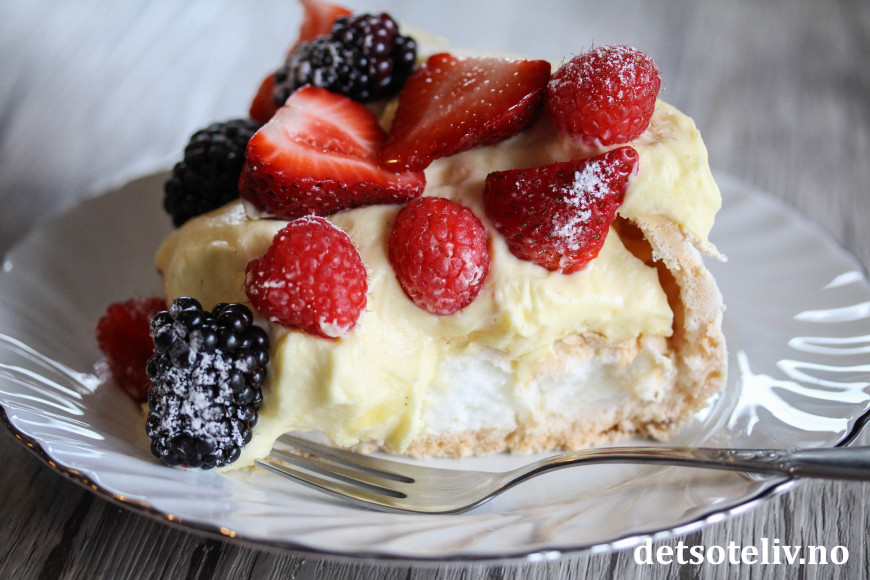 ♥ Se også Pavlova med råkrem og bær og Pavlova med eggekrem.