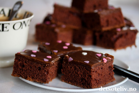 "Digg sjokoladelangpanne" er en kjempepopulær sjokoladekake, og som du skjønner er den lett å digge! Spesielt glasuren utmerker seg, som inneholder både kaffe og mye, god sjokolade.