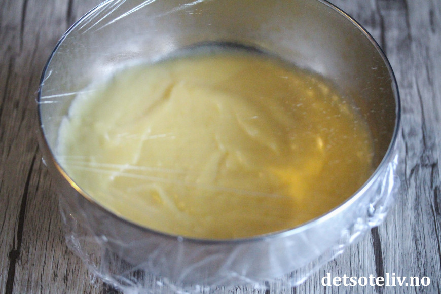 Ta kjelen av platen, dekk til med plast og la vaniljekremen avkjøles til den er kald.
