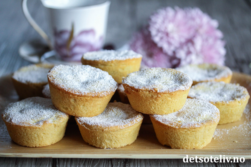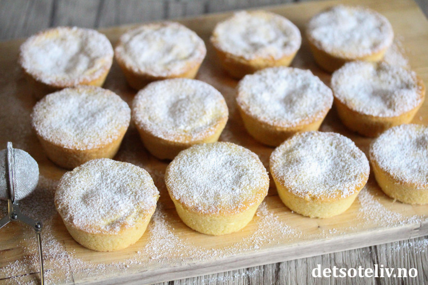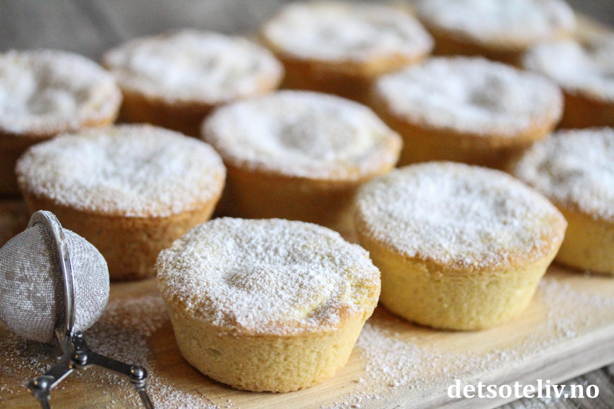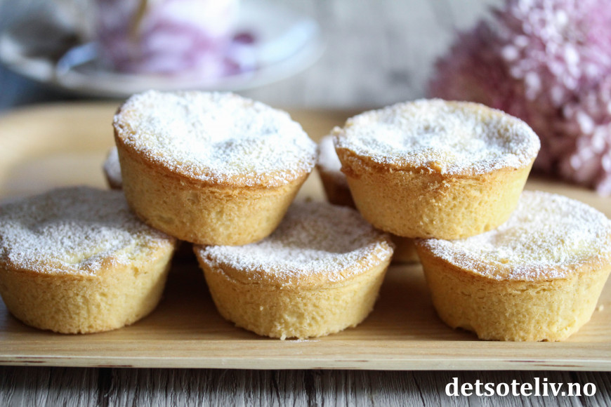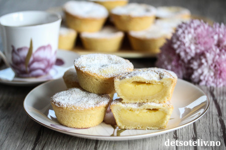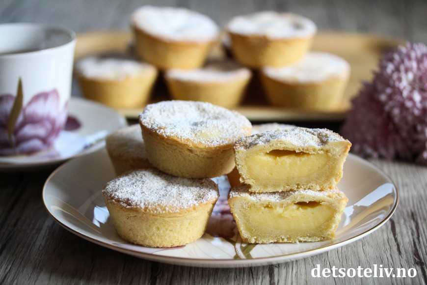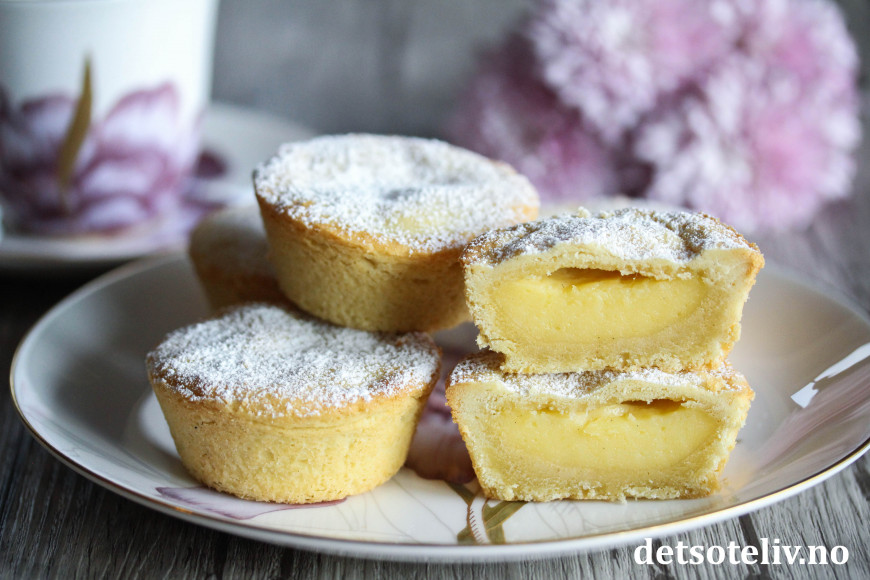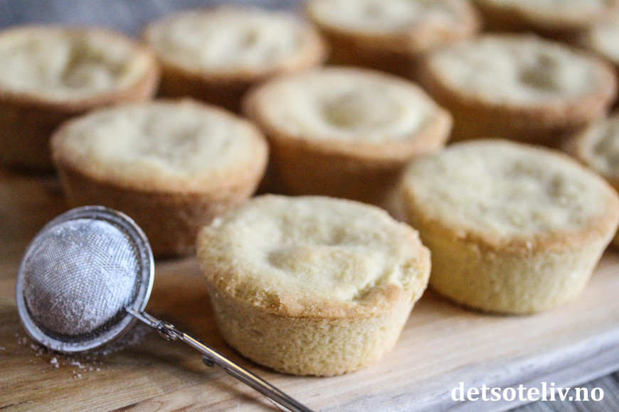 Mørdeigskakene er fylt med vaniljekrem og smaker nydelig!
