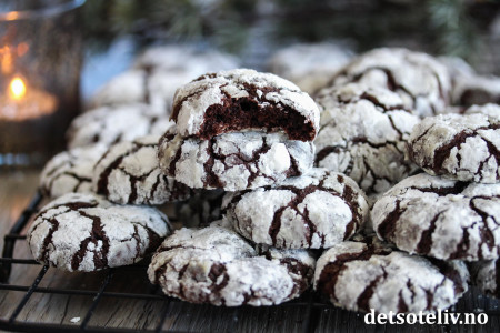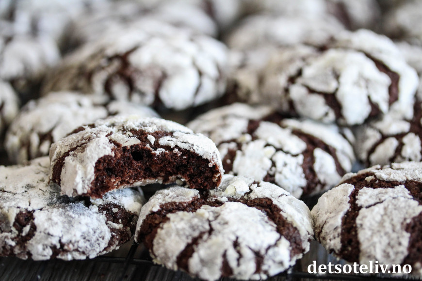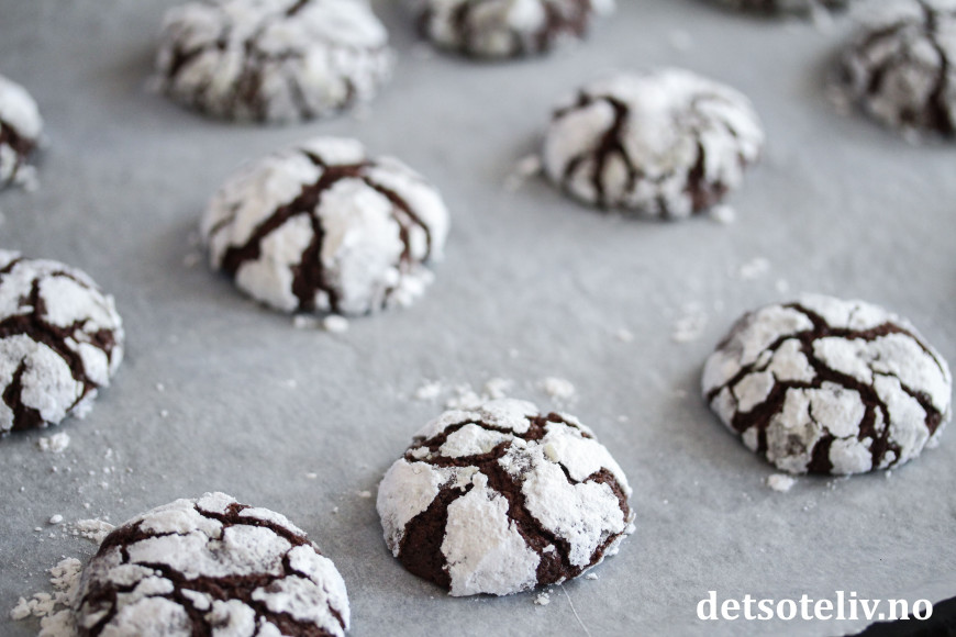 ♥ Crinkle Cookies kan lages med ulike smaker. Se for eksempel Red Velvet Crinkle Cookies her på Det søte liv.